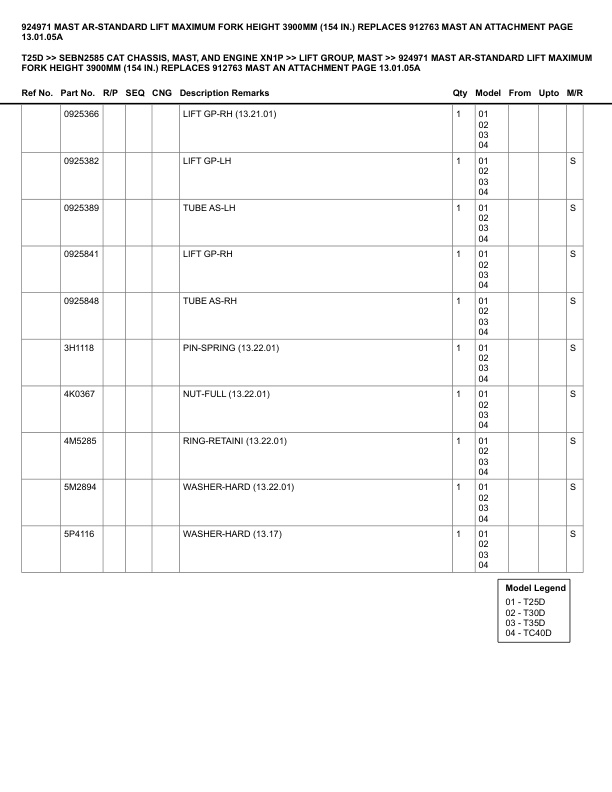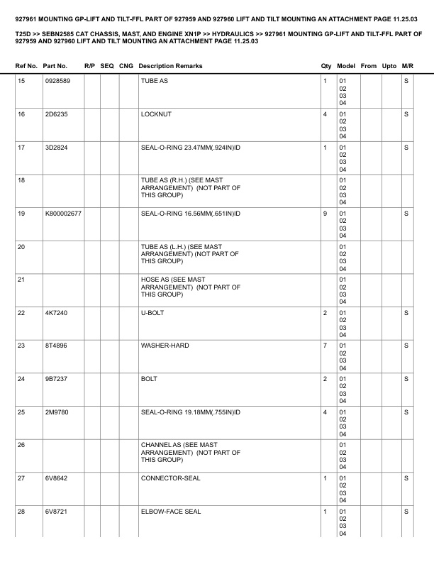 Caterpillar T25D Parts Manual SEBN2585