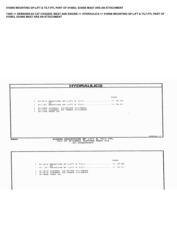 - Information: CAT CHASSIS, MAST AND ENGINE