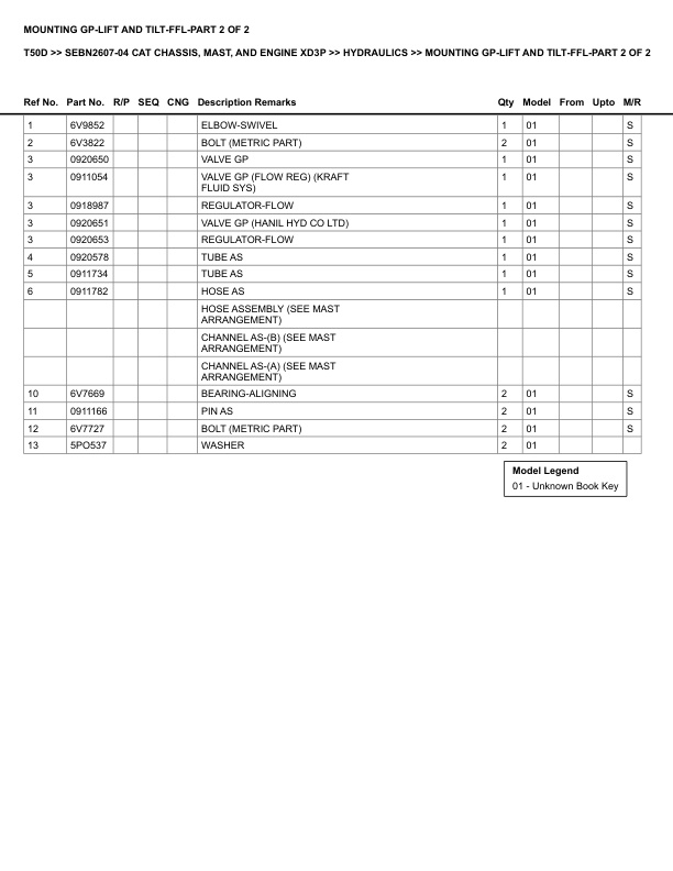 Caterpillar T50D Parts Manual SEBN2607-04