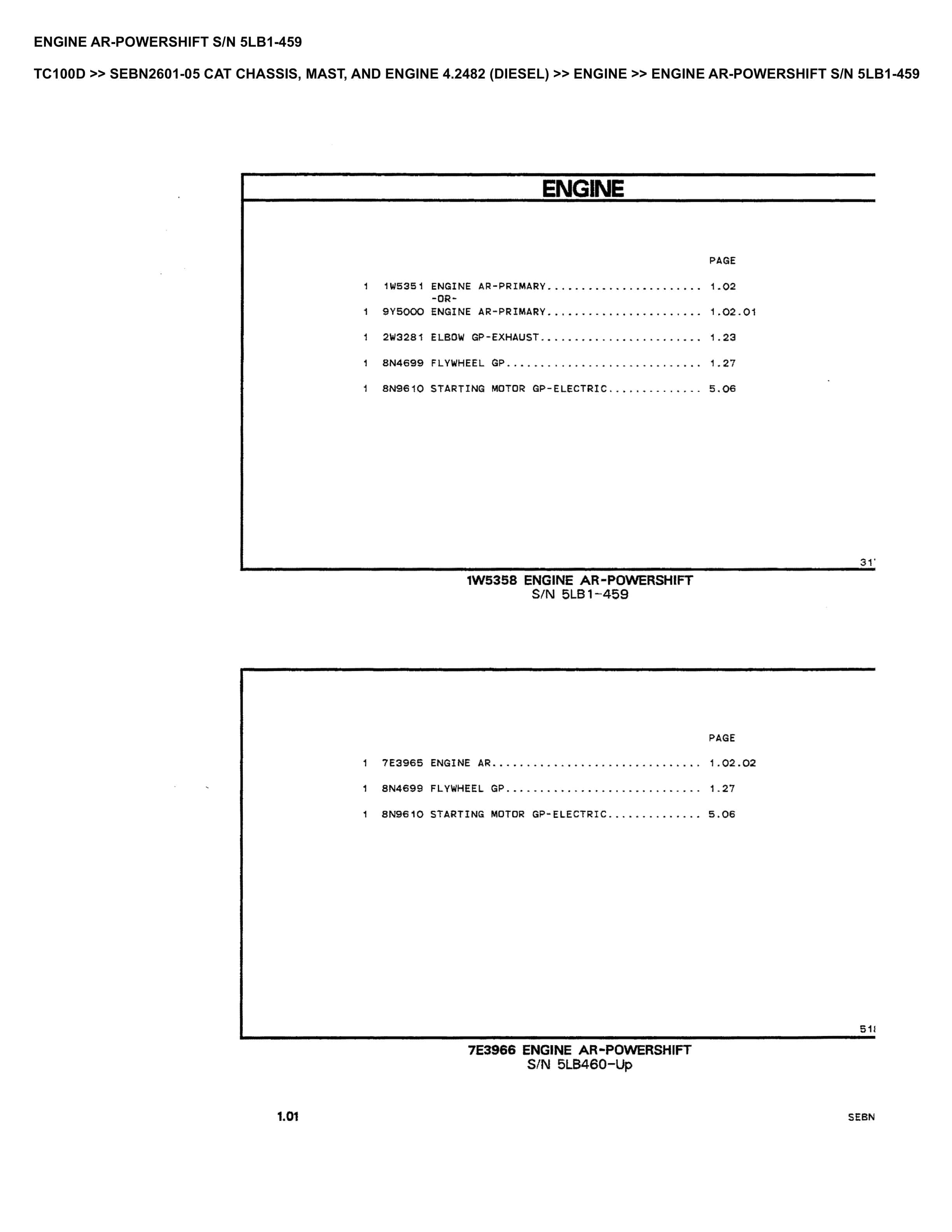 • 5. _ENGINE AR-PRIMARY ENGINE S_N U106653N AND BELOW PART OF 1W5358, 1W7229 ENGINE ARS Spare Parts Catalog.pdf