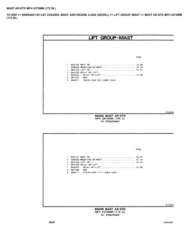 • Information: CAT CHASSIS, MAST, AND ENGINE 4.2482 (DIESEL)2