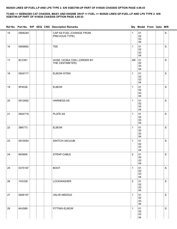 - 70. _902920 LINES GP-FUEL-LP AND LPS TYPE 2. S_N 5GB3796-UP PART OF 910026 CHASSIS OPTION PAGE 4.09.03 Spare Parts Catalog.pdf