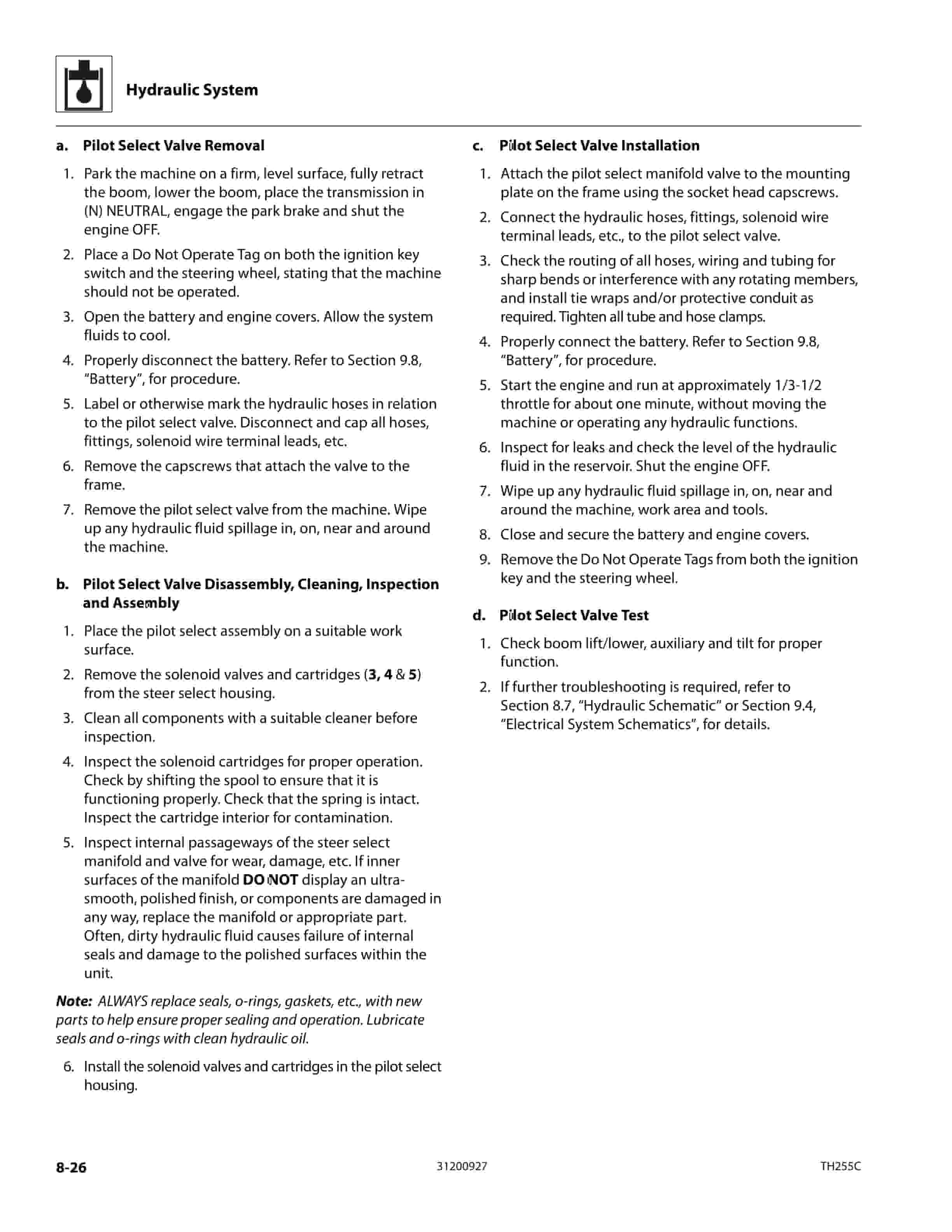- 1.5.4.5. Tilt and Auxiliary Hose Replacement