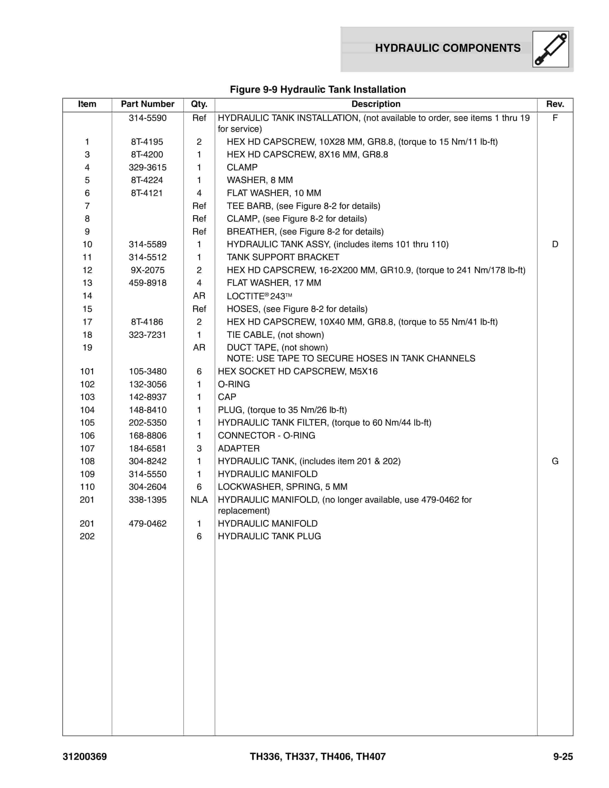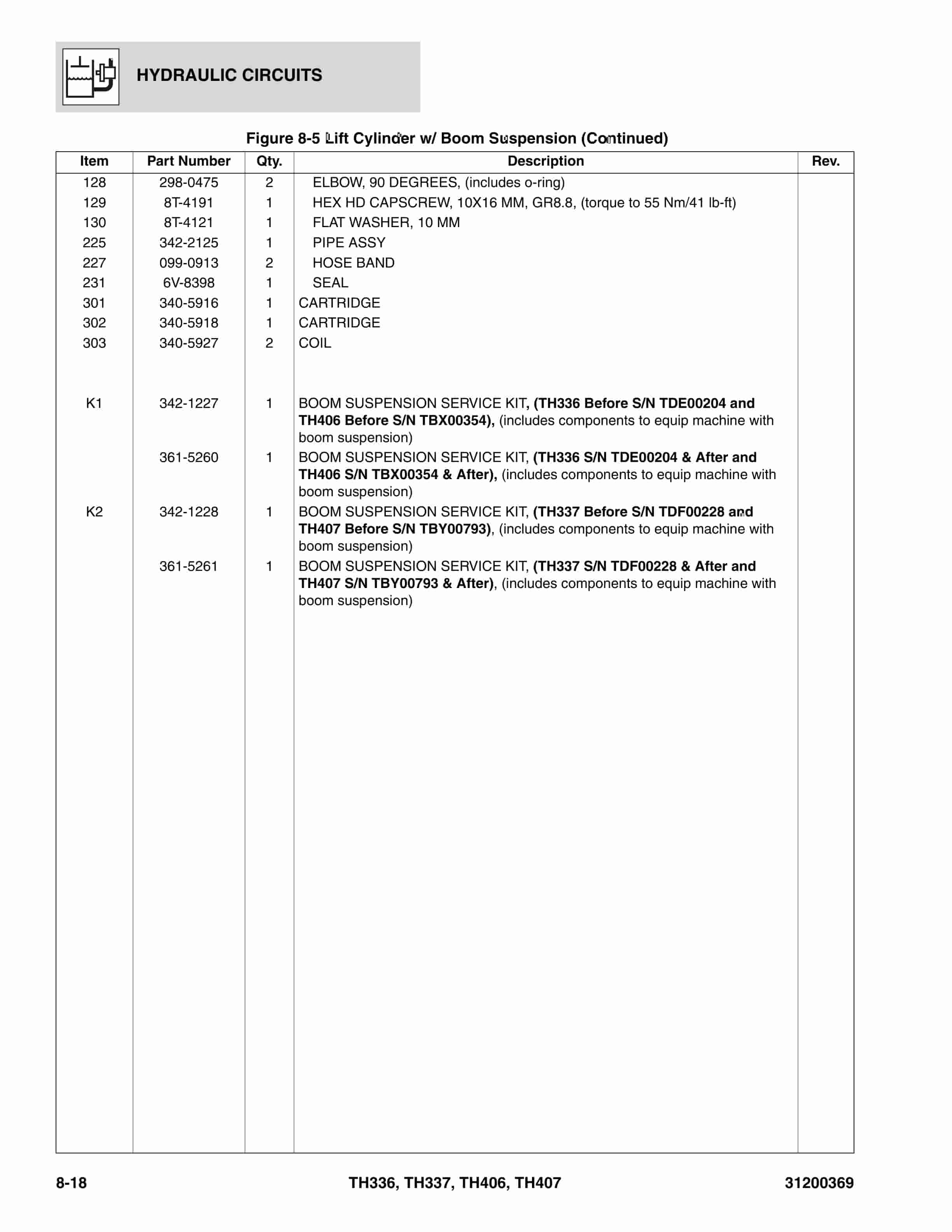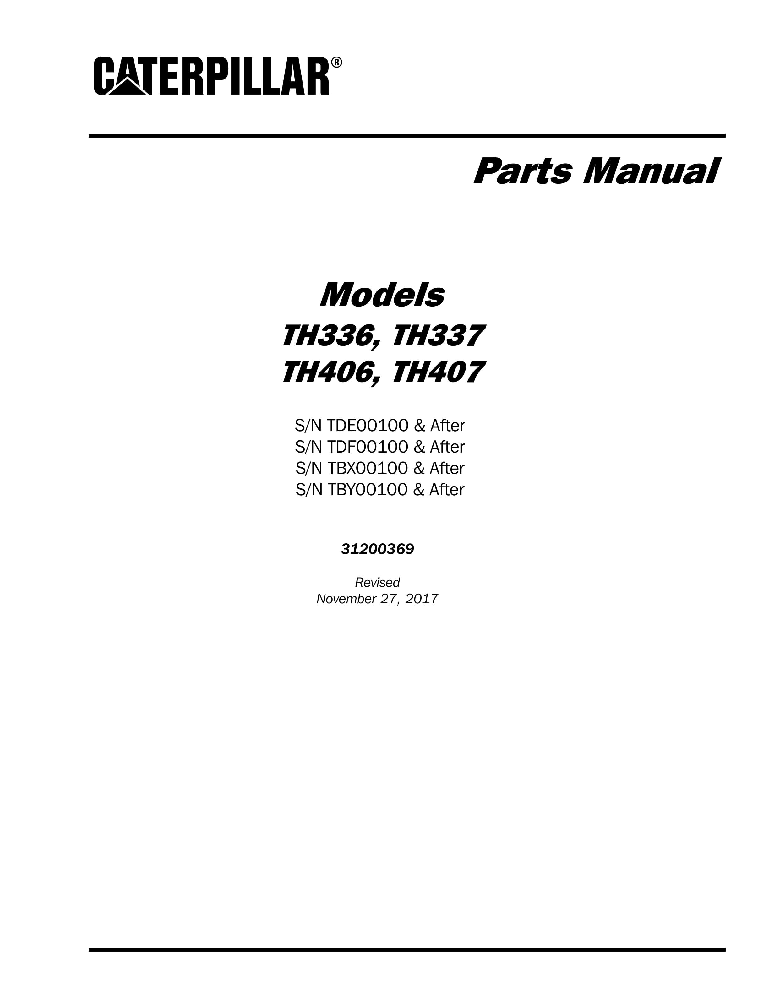 Caterpillar TH336, TH337, TH406, TH407 Parts Manual 31200369