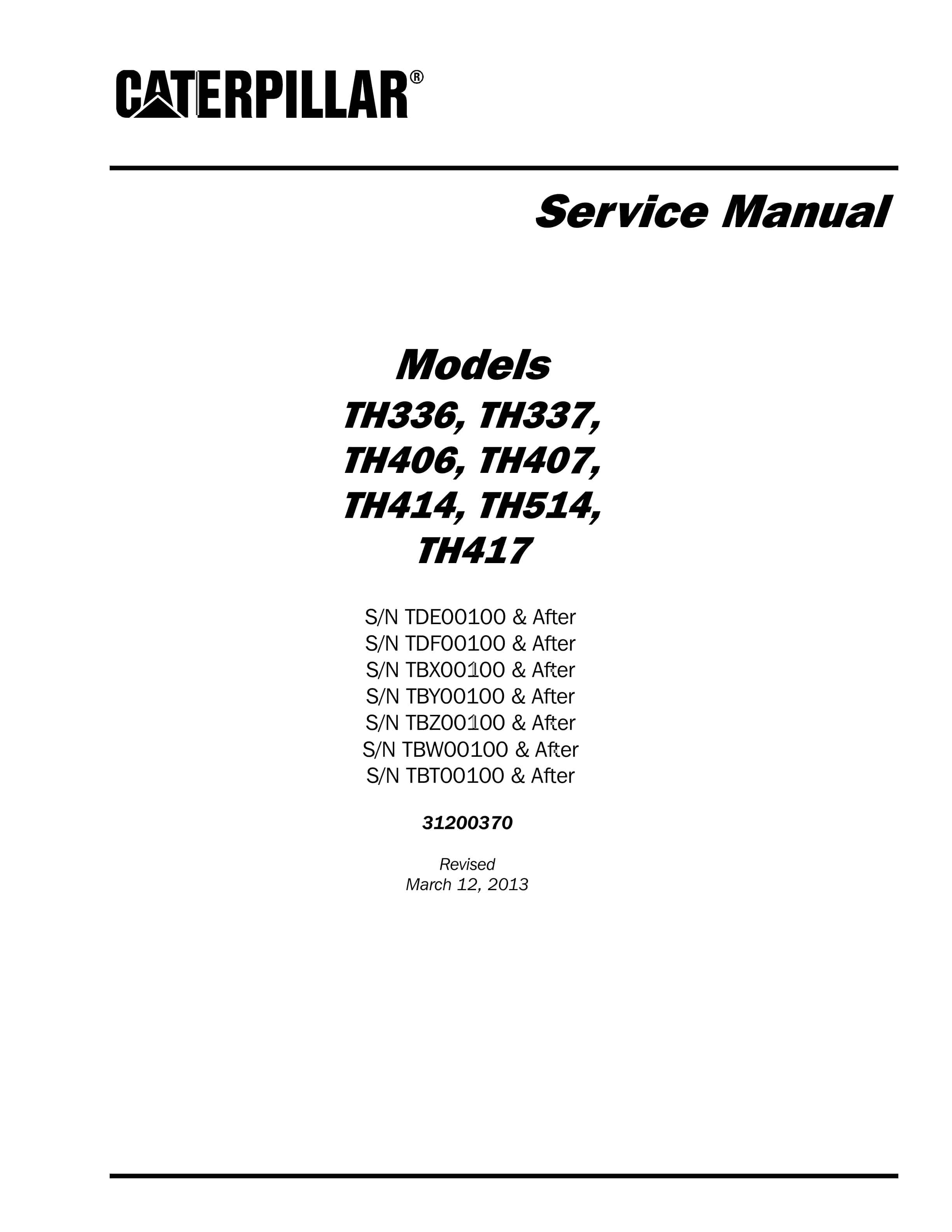 Caterpillar TH336, TH337, TH406, TH407, TH414, TH514, TH417 Service Manual 31200370