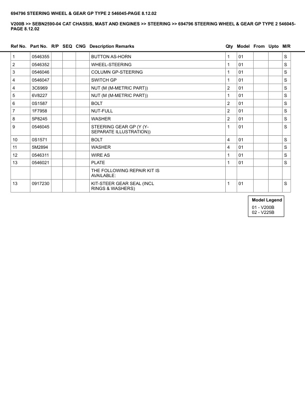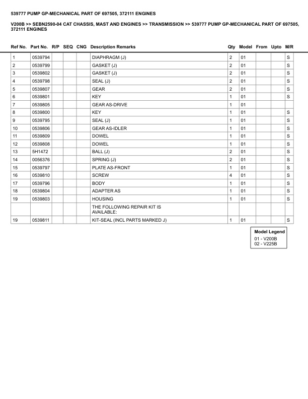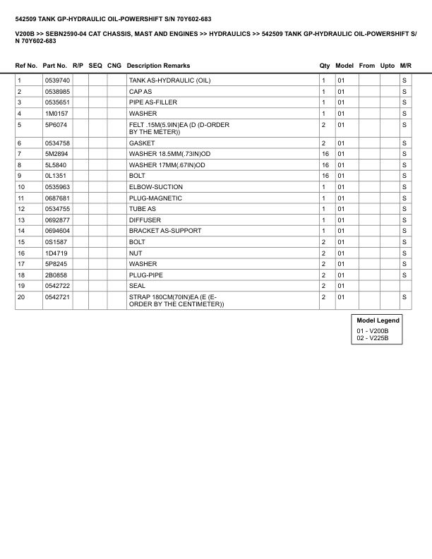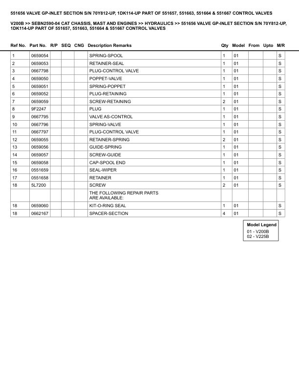 Caterpillar V200B Parts Manual SEBN2590-04