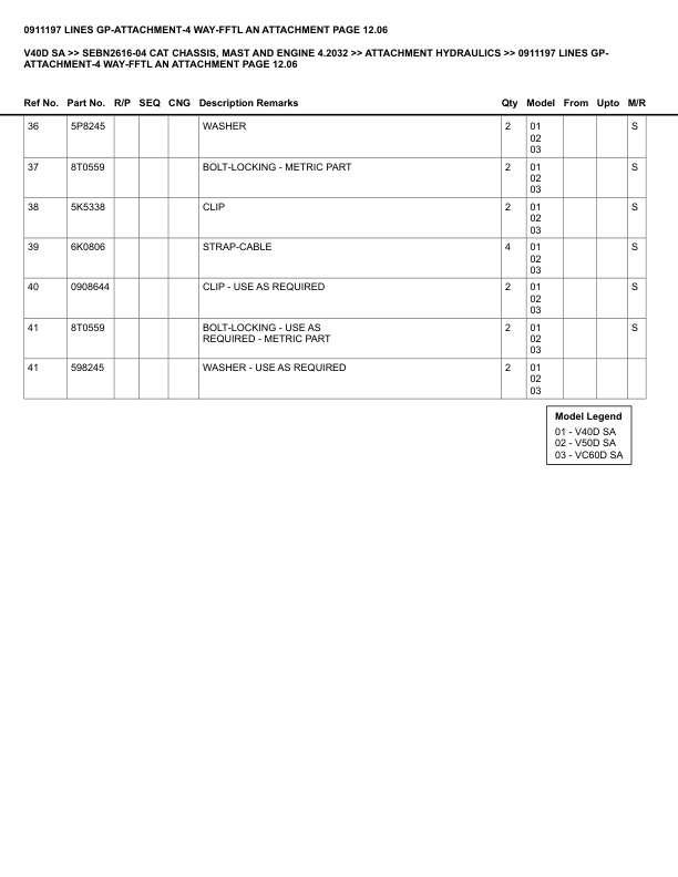 Caterpillar V40D SA Parts Manual SEBN2616-04