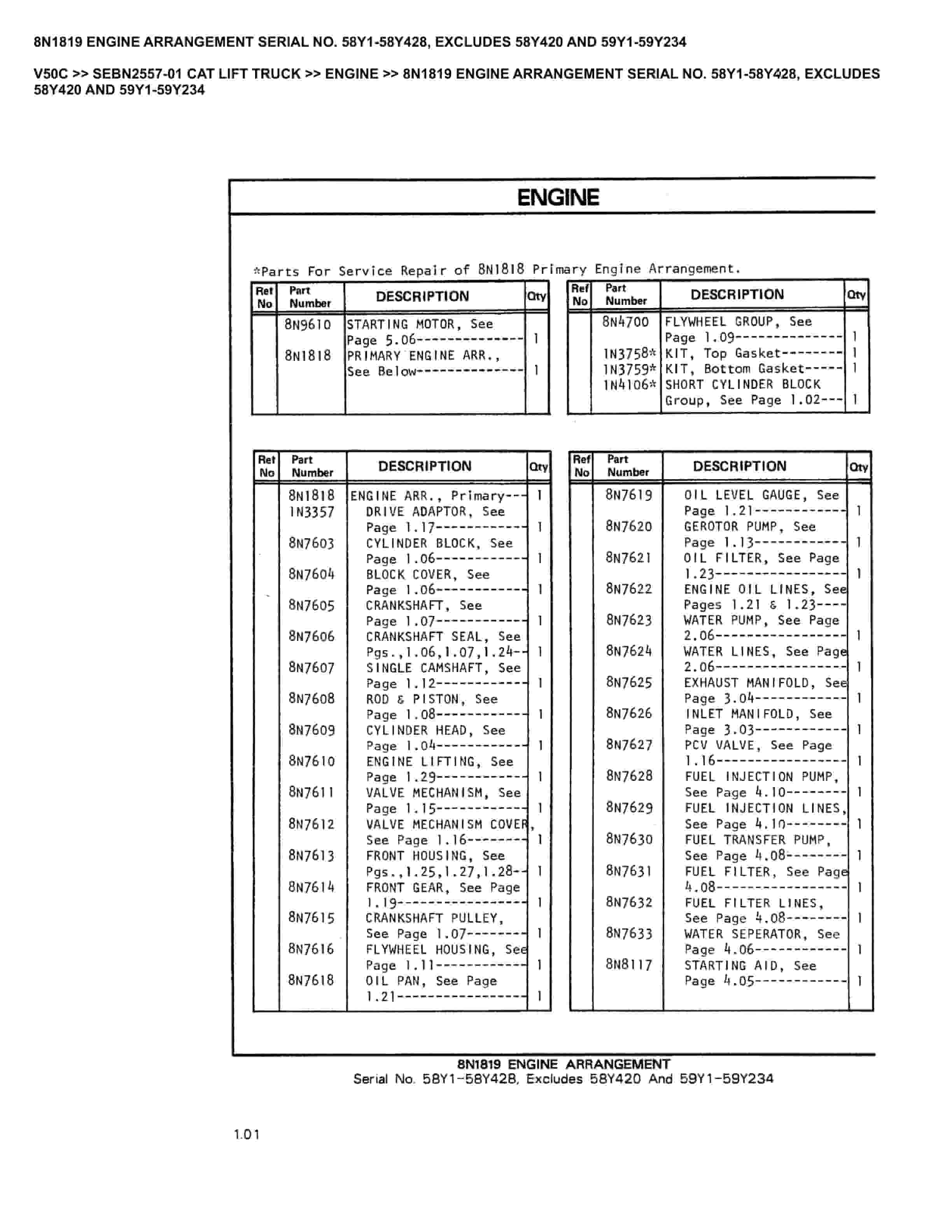 - 1. _8N1819 ENGINE ARRANGEMENT SERIAL NO. 58Y1-58Y428, EXCLUDES 58Y420 AND 59Y1-59Y234 Spare Parts Catalog.pdf