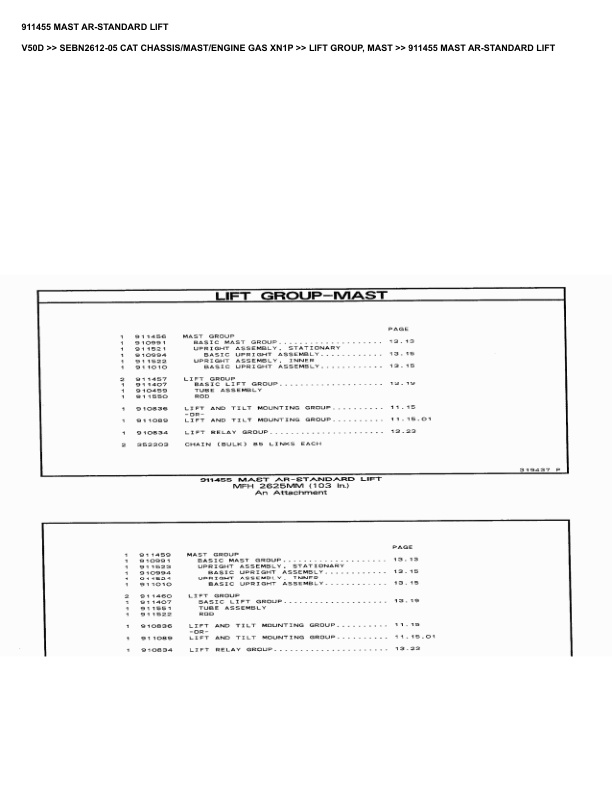 Caterpillar V50D Parts Manual SEBN2612-05