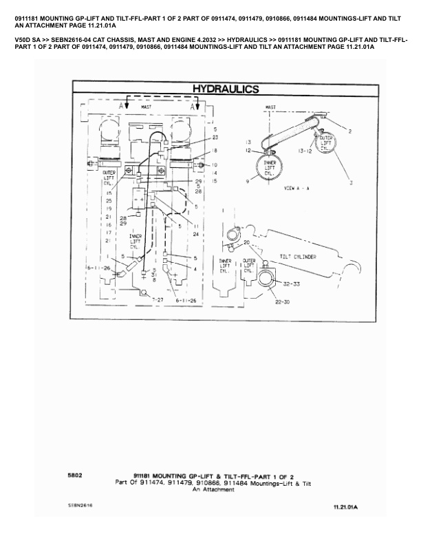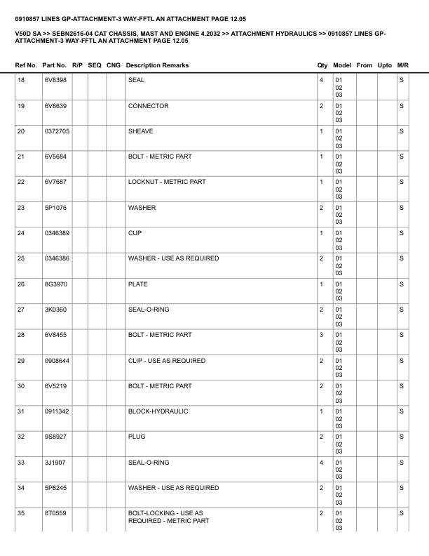 Caterpillar V50D SA Parts Manual SEBN2616-04