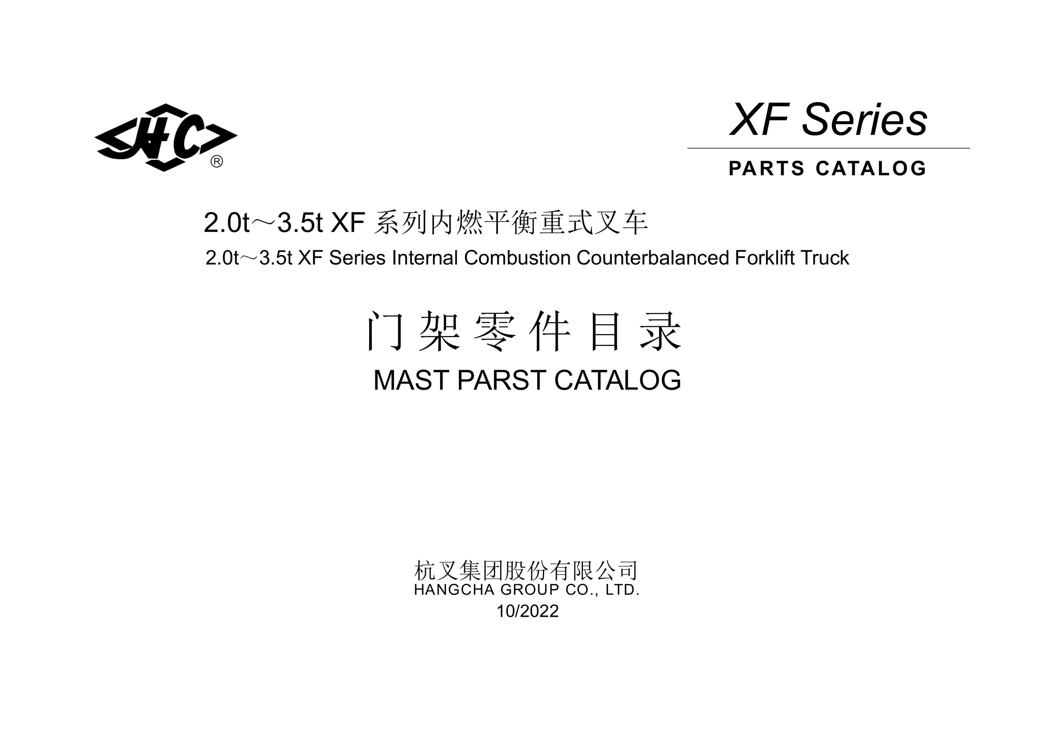 Hangcha 2.0t-3.5t XF Series Internal Combustion Counterbalanced Forklift Truck Mast Parts Catalog