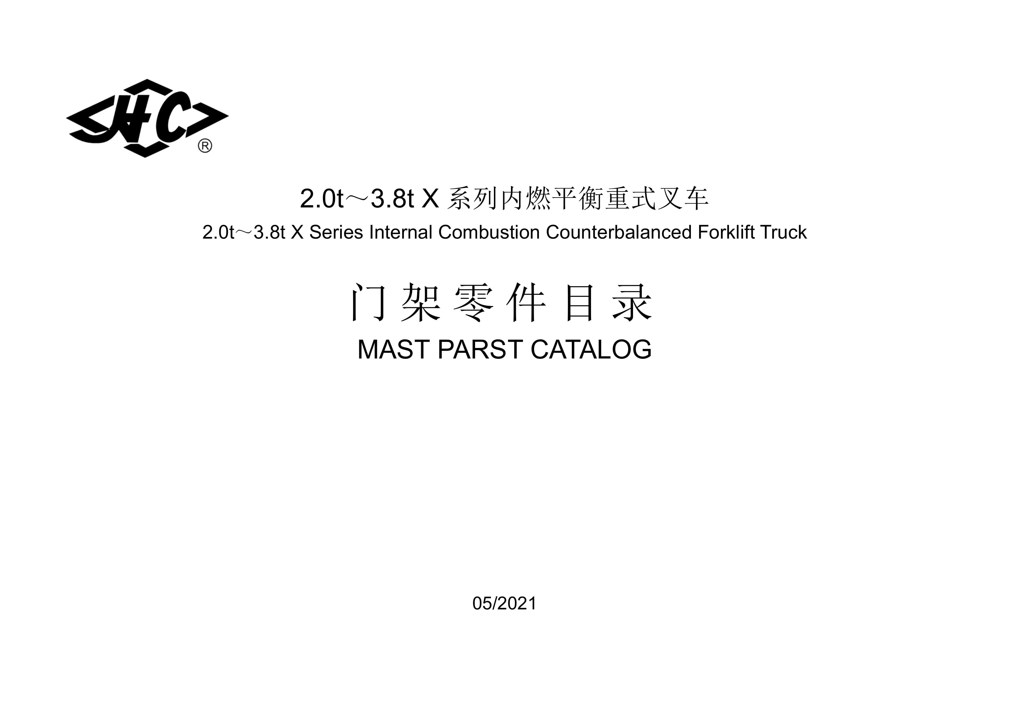 Hangcha 2.0t-3.8t X Series Internal Combustion Counterbalanced Forklift Truck Mast Parts Catalog