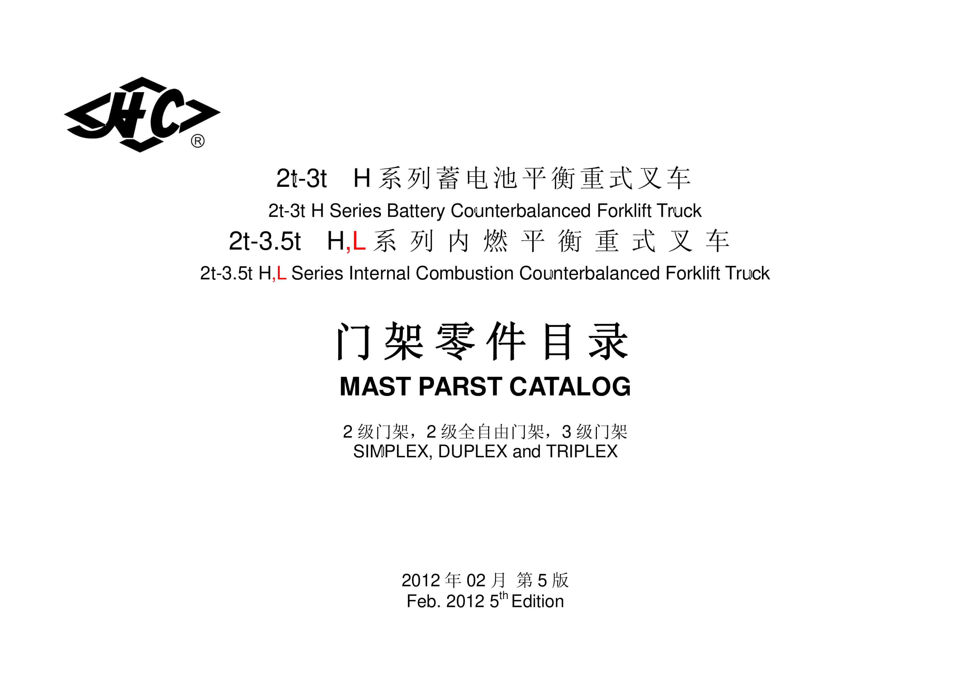Hangcha 2t-3.5t H, L Series Counterbalanced Forklift Truck Parts Catalog