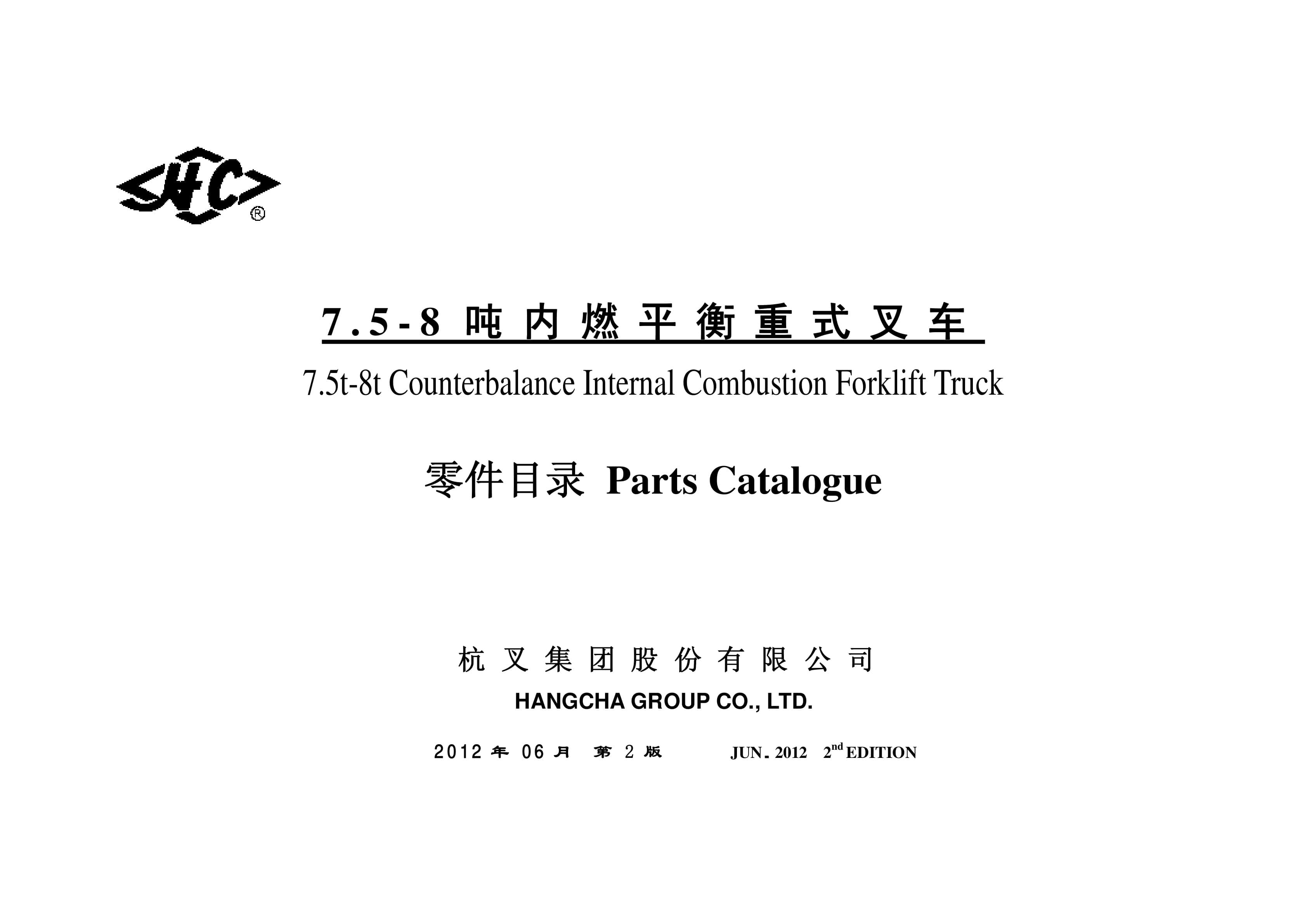 Hangcha 7.5t-8t Counterbalance Internal Combustion Forklift Truck Parts Catalog-2