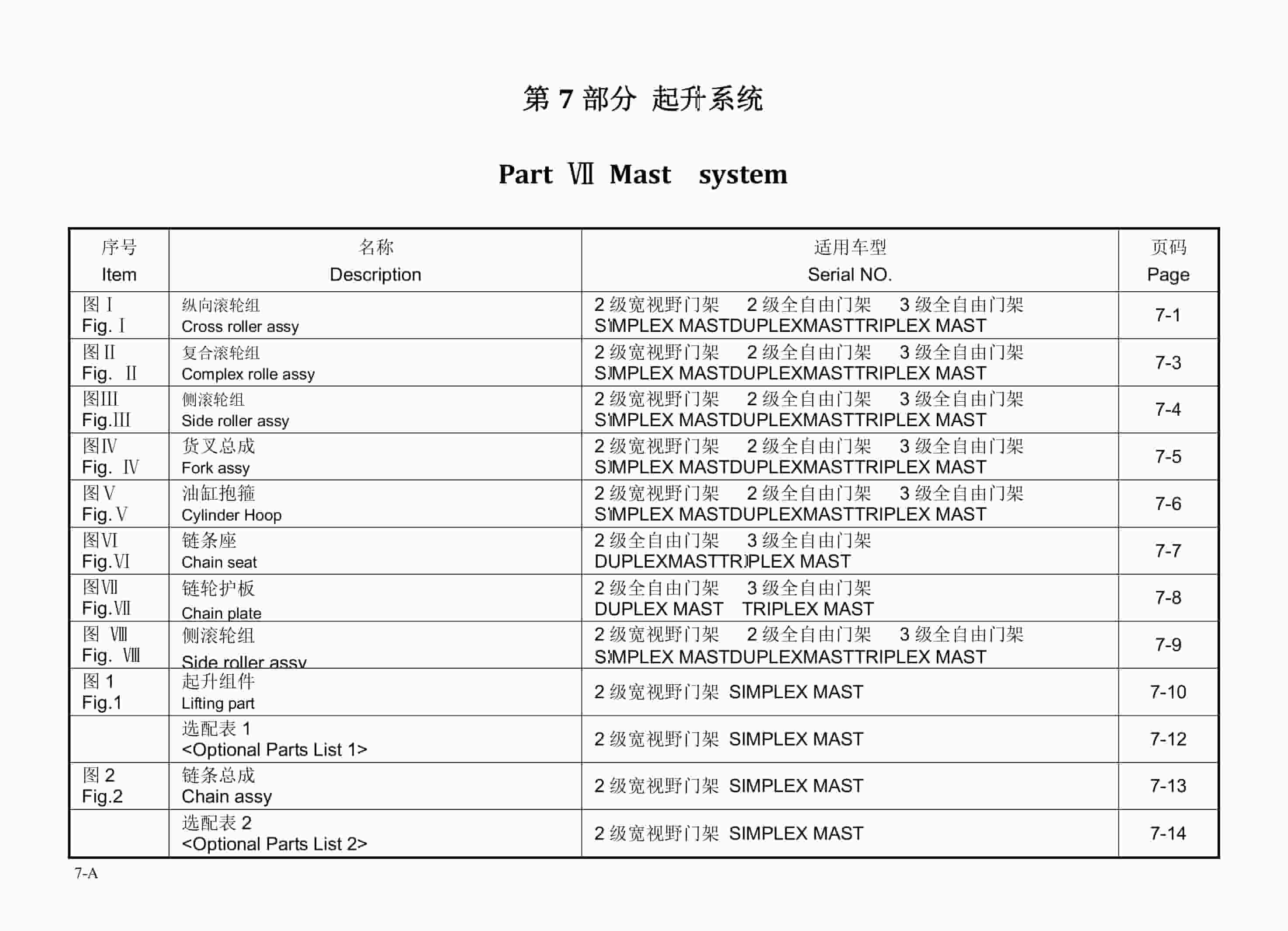 Hangcha 1.5t-1.8t XF2 Series Internal Combustion Counterbalanced Forklift Truck Mast Parts Catalog