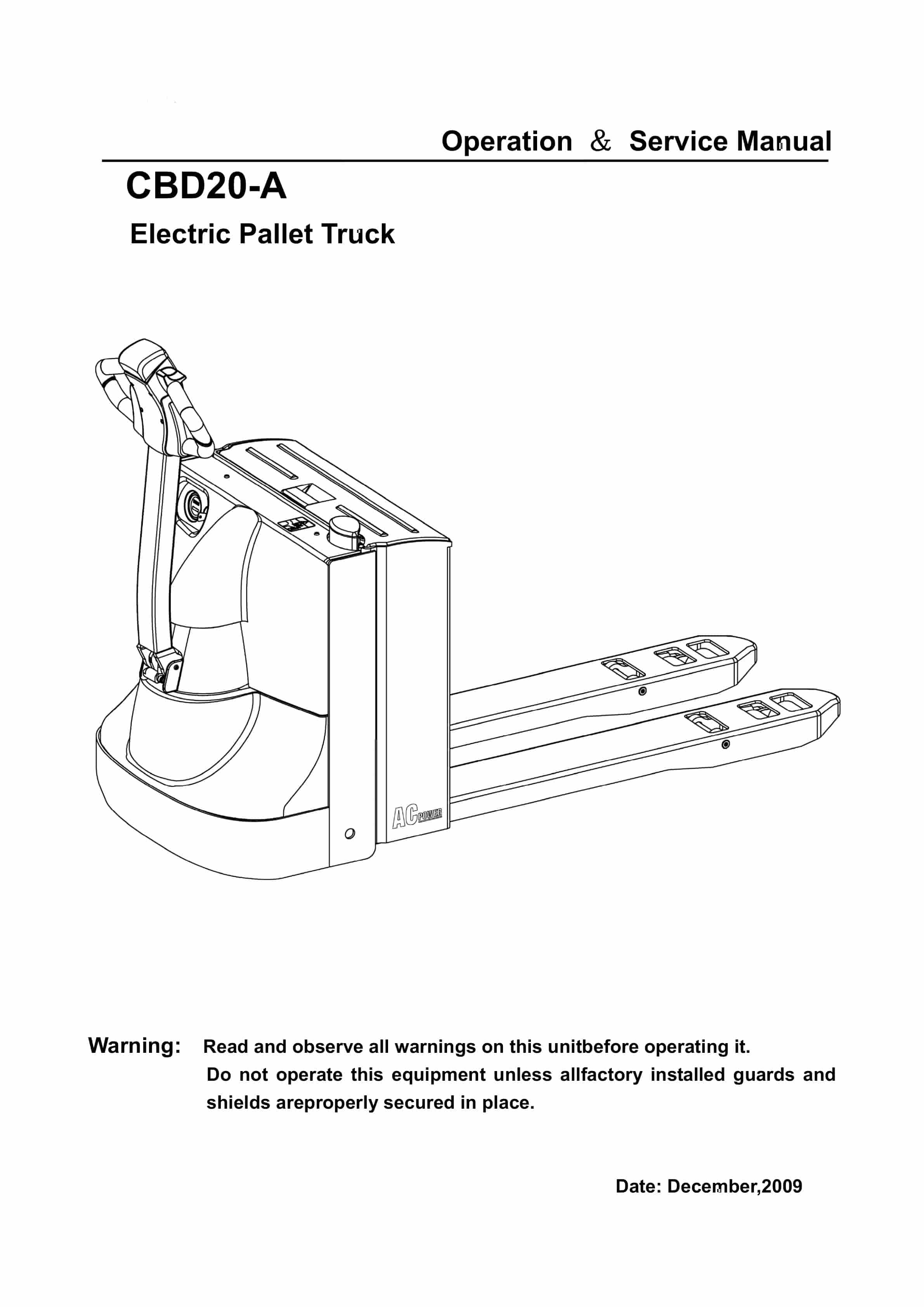 Hangcha CBD20-A Electric Pallet Truck Operation and Service Manual