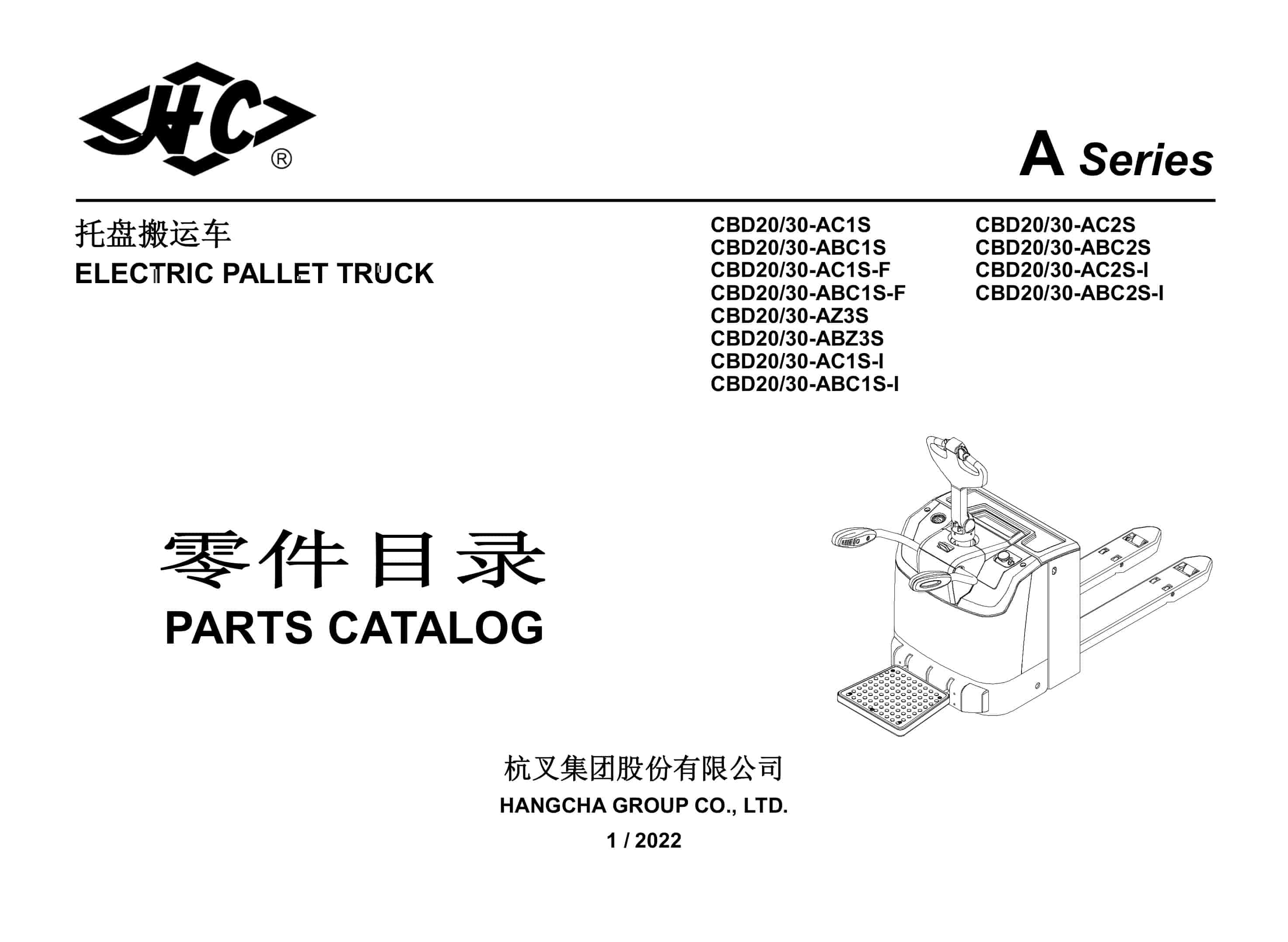 Hangcha CBD20-AC1S to CBD30-ABC2S-I Parts Catalog