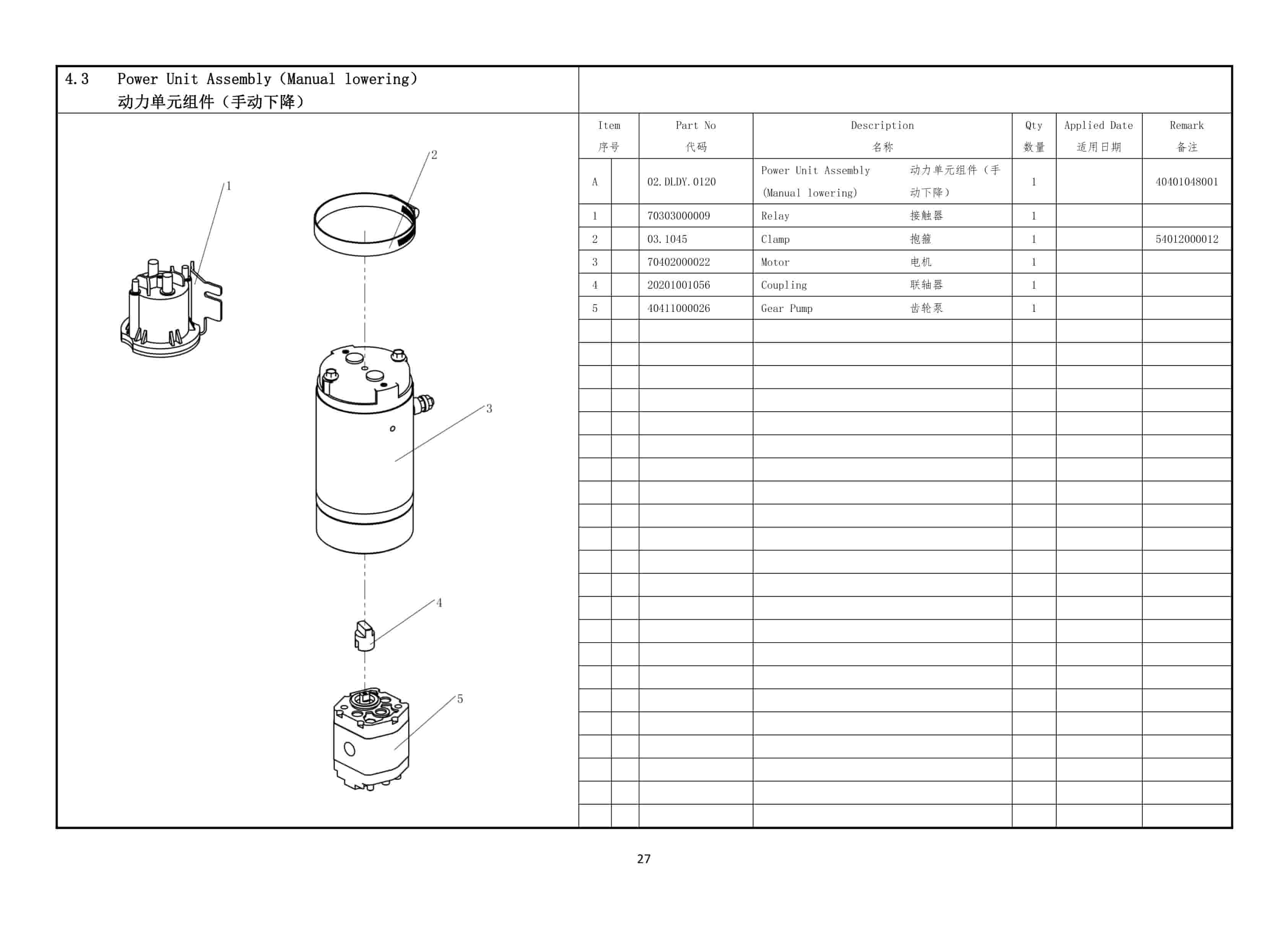 • 39. Lifting Cylinder AssemblyElectric lowering