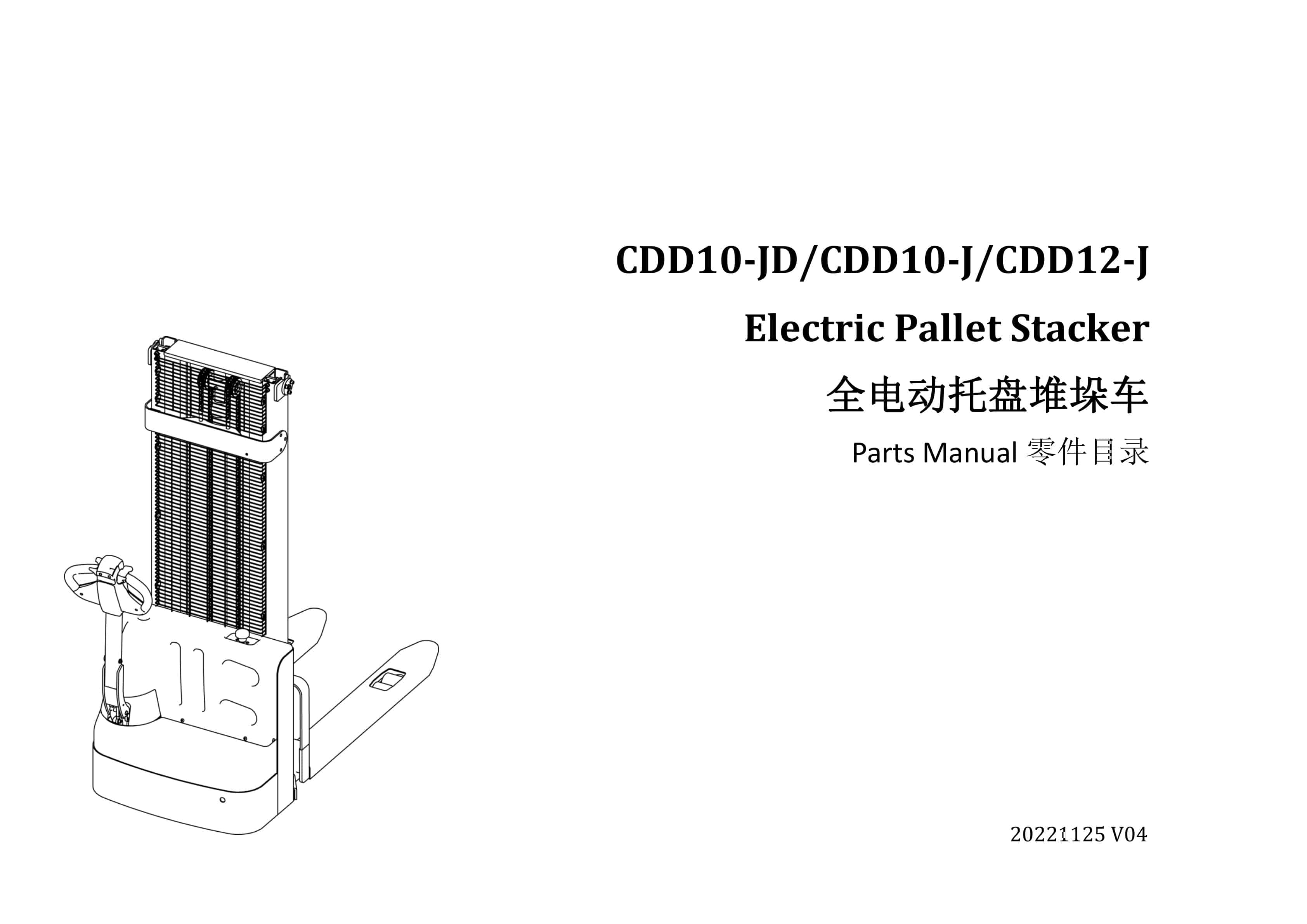 Hangcha CDD10-JD, CDD10-J, CDD12-J Electric Pallet Stacker Parts Manual
