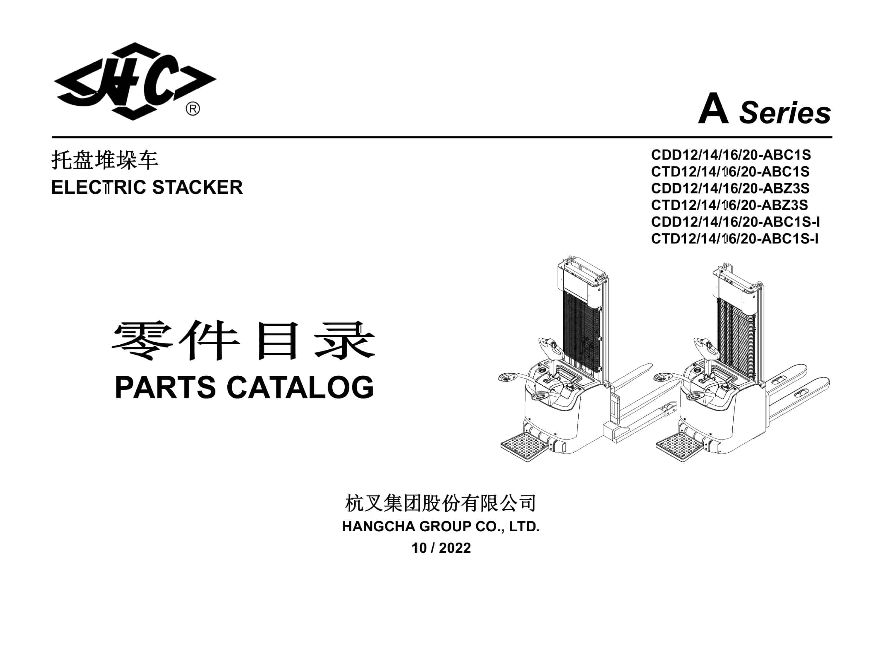 Hangcha CDD12-ABC1S to CTD20-ABC1S-I Parts Catalog