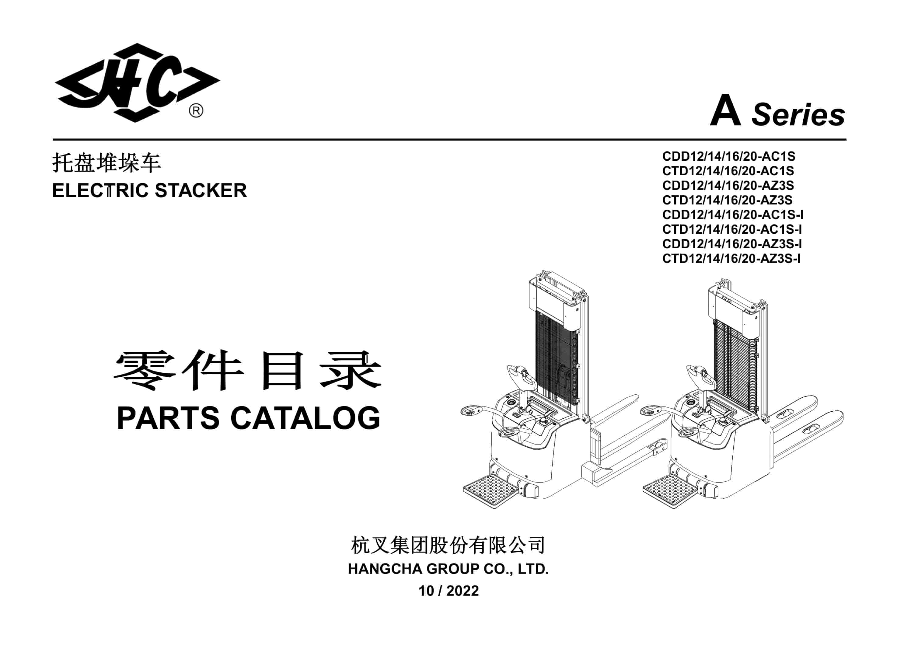 Hangcha CDD12-AC1S to CTD20-AZ3S-I Parts Catalog