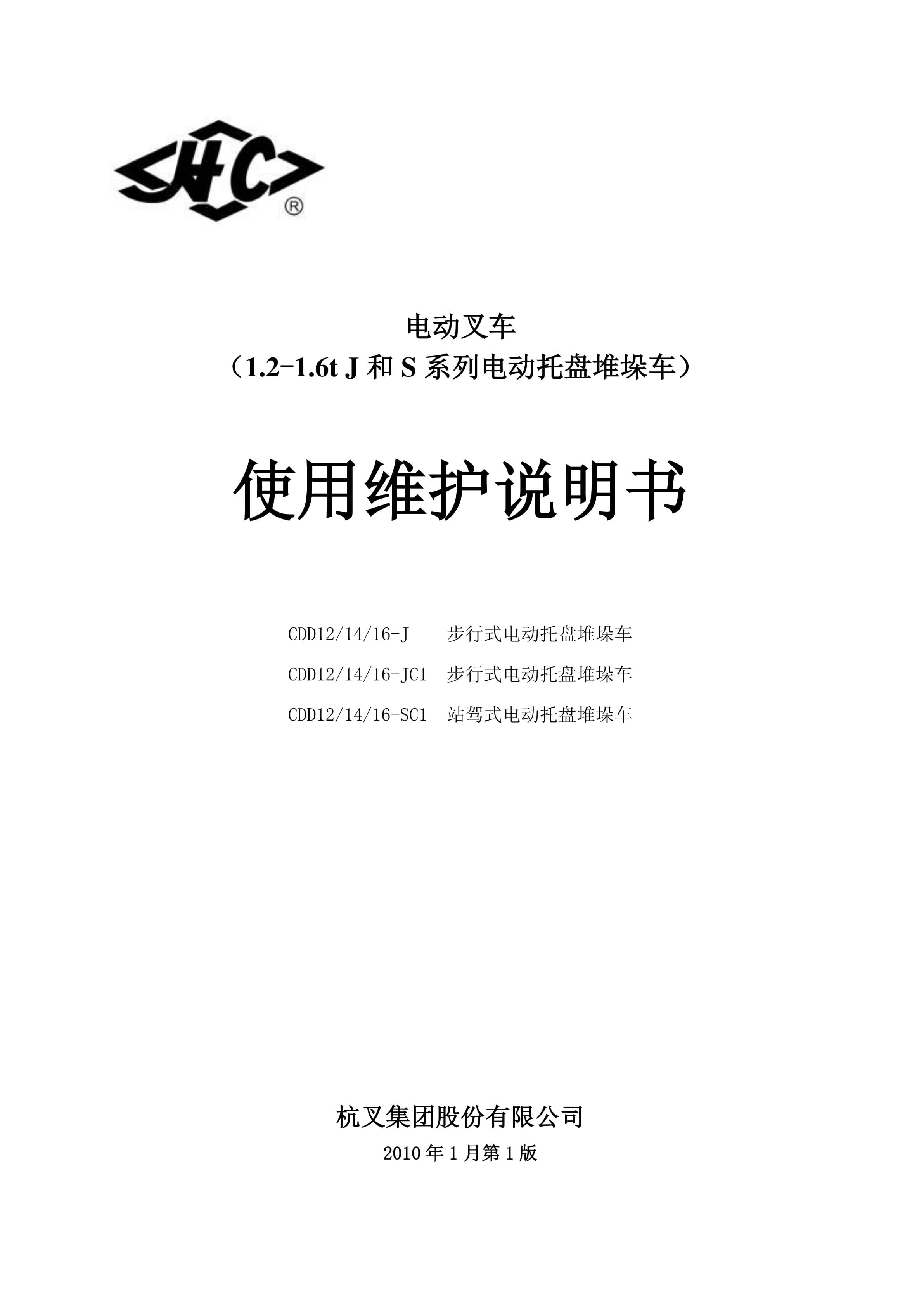 Hangcha CDD12-J to CDD16-SC1 Operation and Maintenance Manual ZH-2