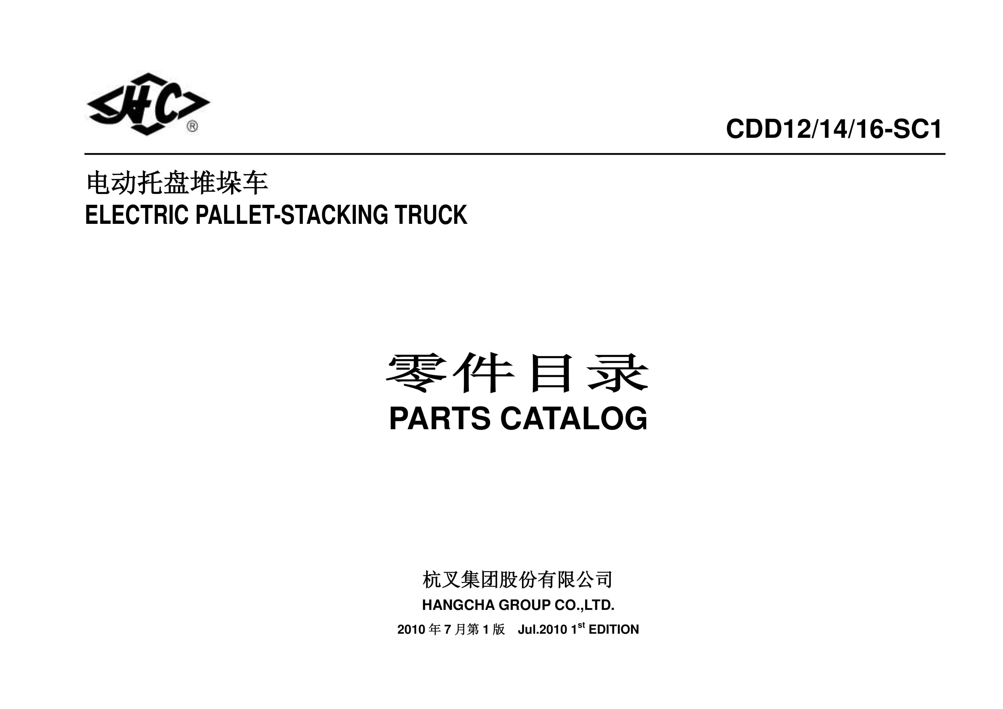 Hangcha CDD12-SC1, CDD14-SC1, CDD16-SC1 Parts Catalog