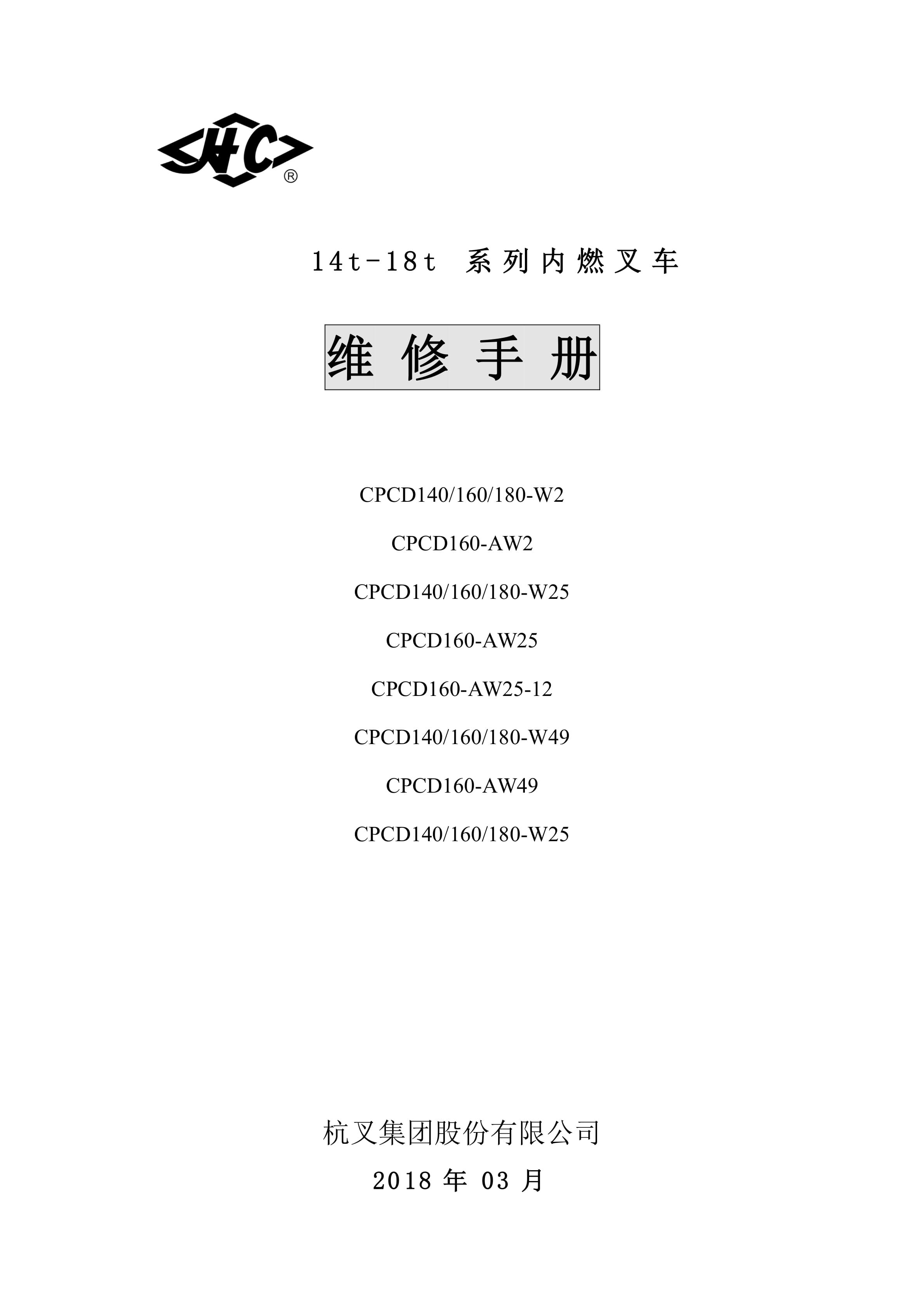 Hangcha CPCD140-W2 to CPCD180-AW49 Service Manual ZH