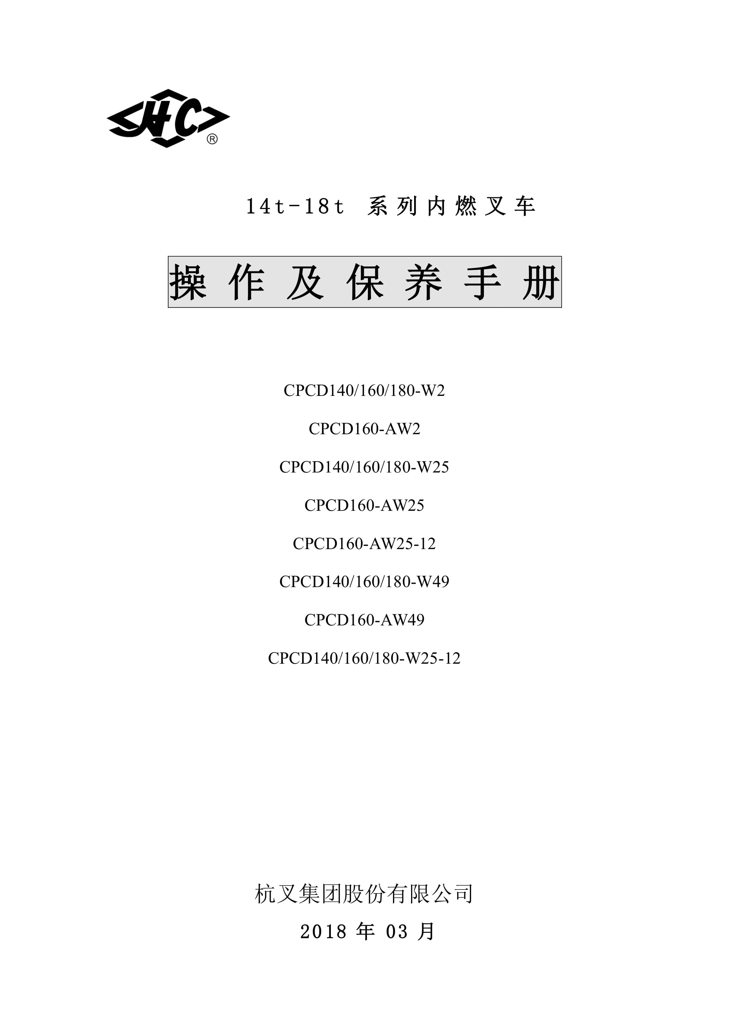 Hangcha CPCD140-W2 to CPCD180-W25-12 Operation and Maintenance Manual ZH