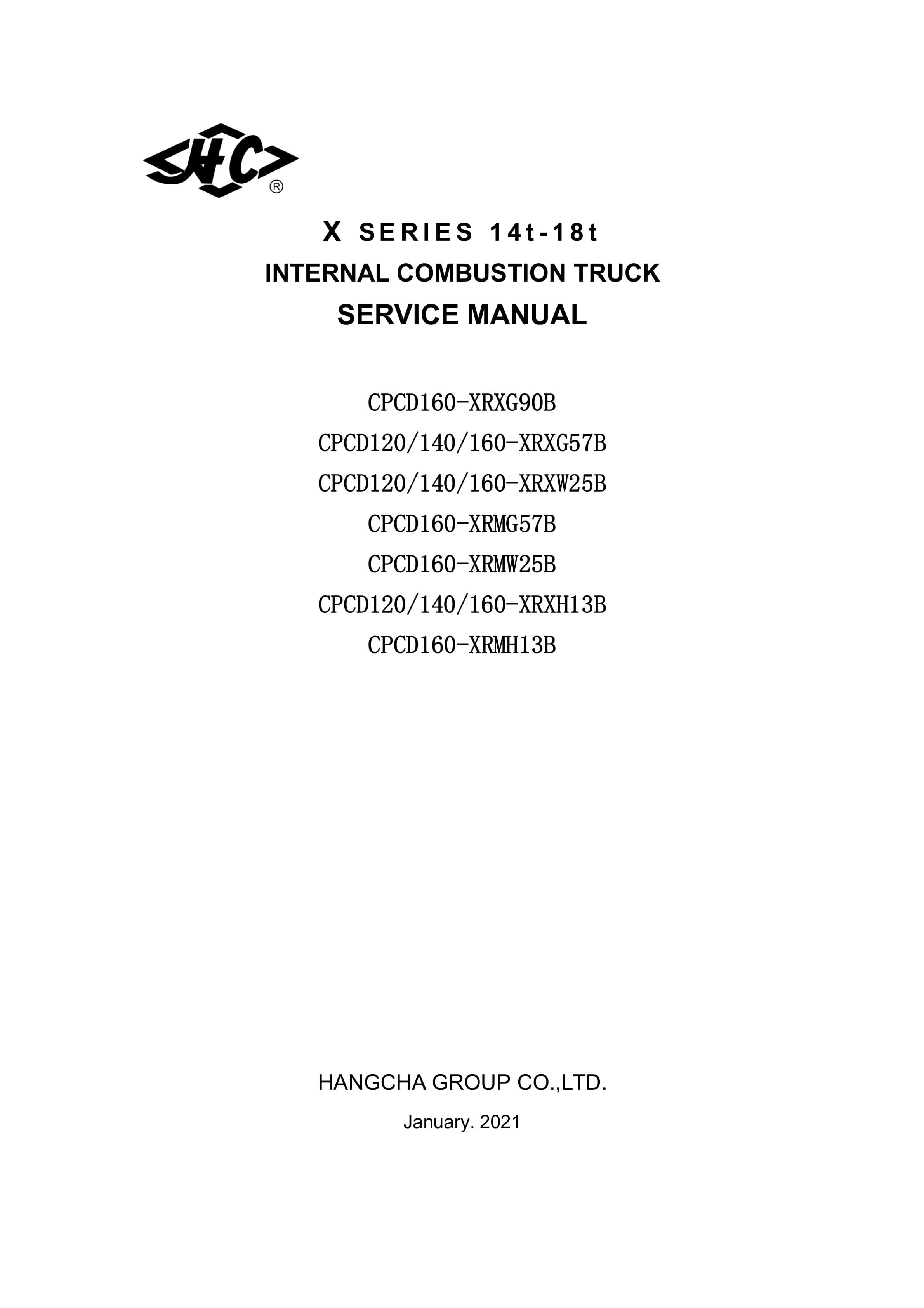Hangcha CPCD140-XRAW85G to CPCD180-XRH9G Service Manual