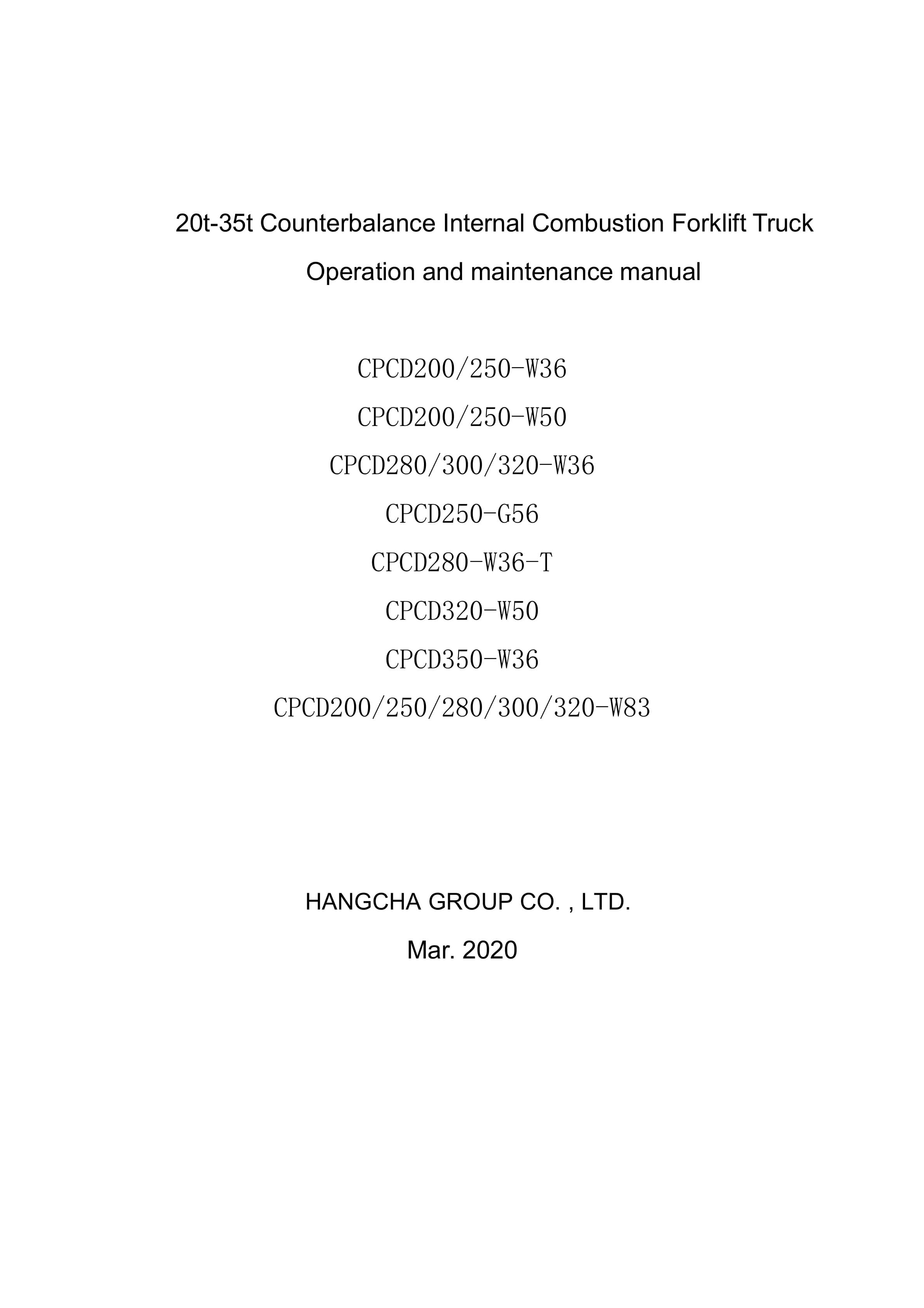Hangcha CPCD200-W36 to CPCD320-W83 Operation and Maintenance Manual