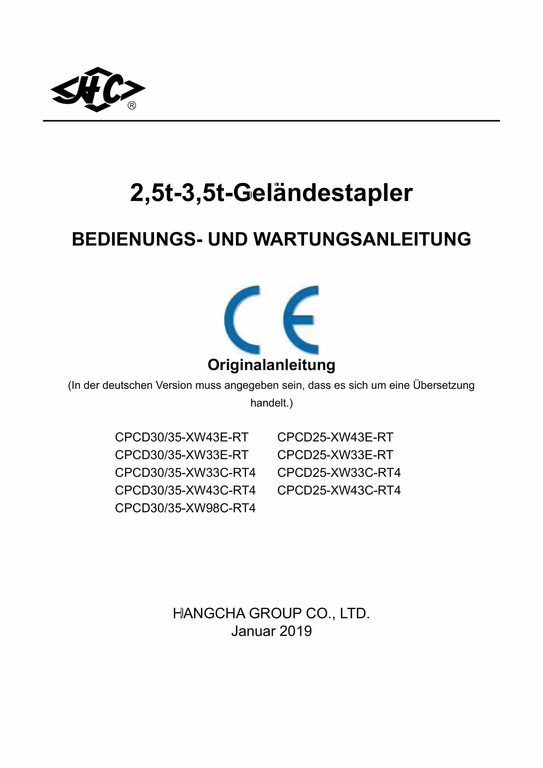 Hangcha CPCD30-XW43E-RT to CPCD25-XW43C-RT4 Operation and Maintenance Manual DE-2