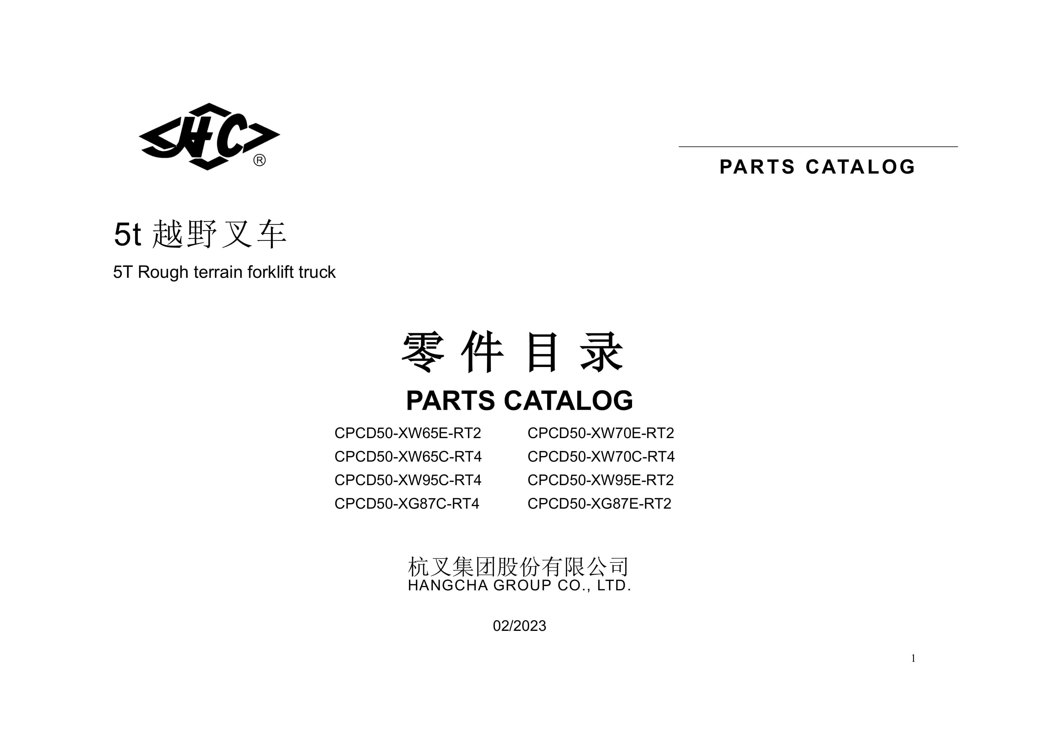 Hangcha CPCD50-XW65E-RT2 to CPCD50-XG87E-RT2 Parts Catalog