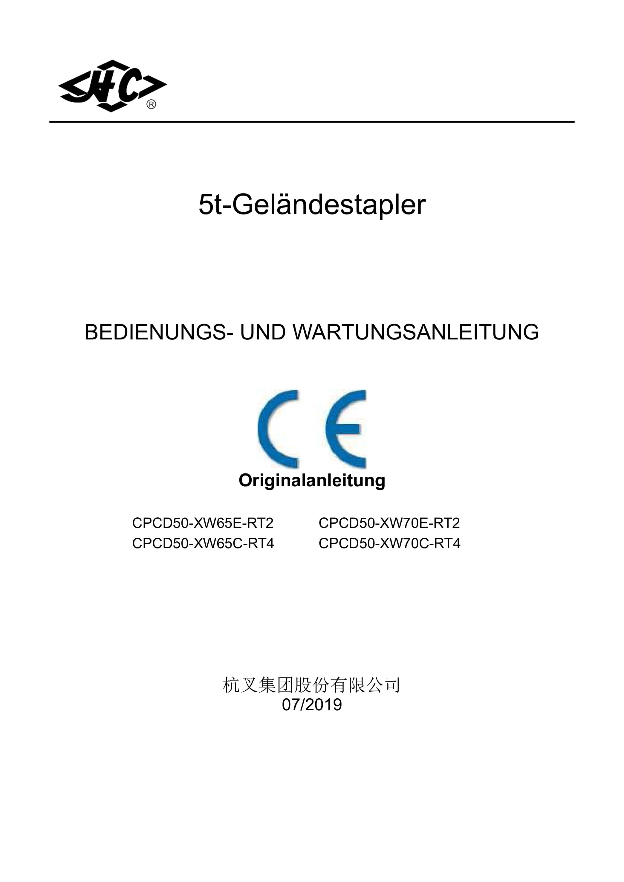 Hangcha CPCD50-XW65E-RT2 to CPCD50-XW70C-RT4 Operation and Maintenance Manual DE