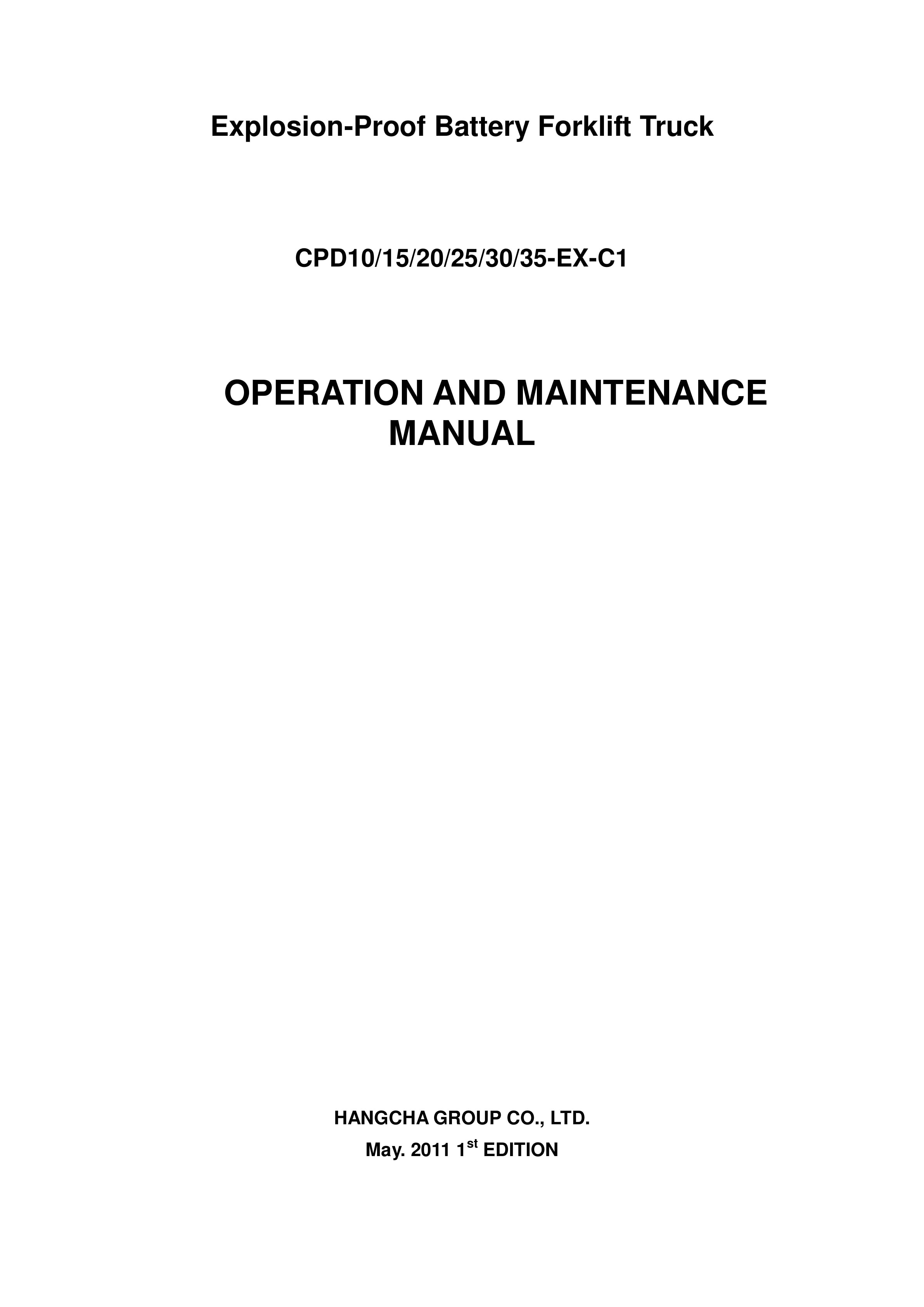 Hangcha CPD10-EX-C1 to CPD35-EX-C1 Operation and Maintenance Manual
