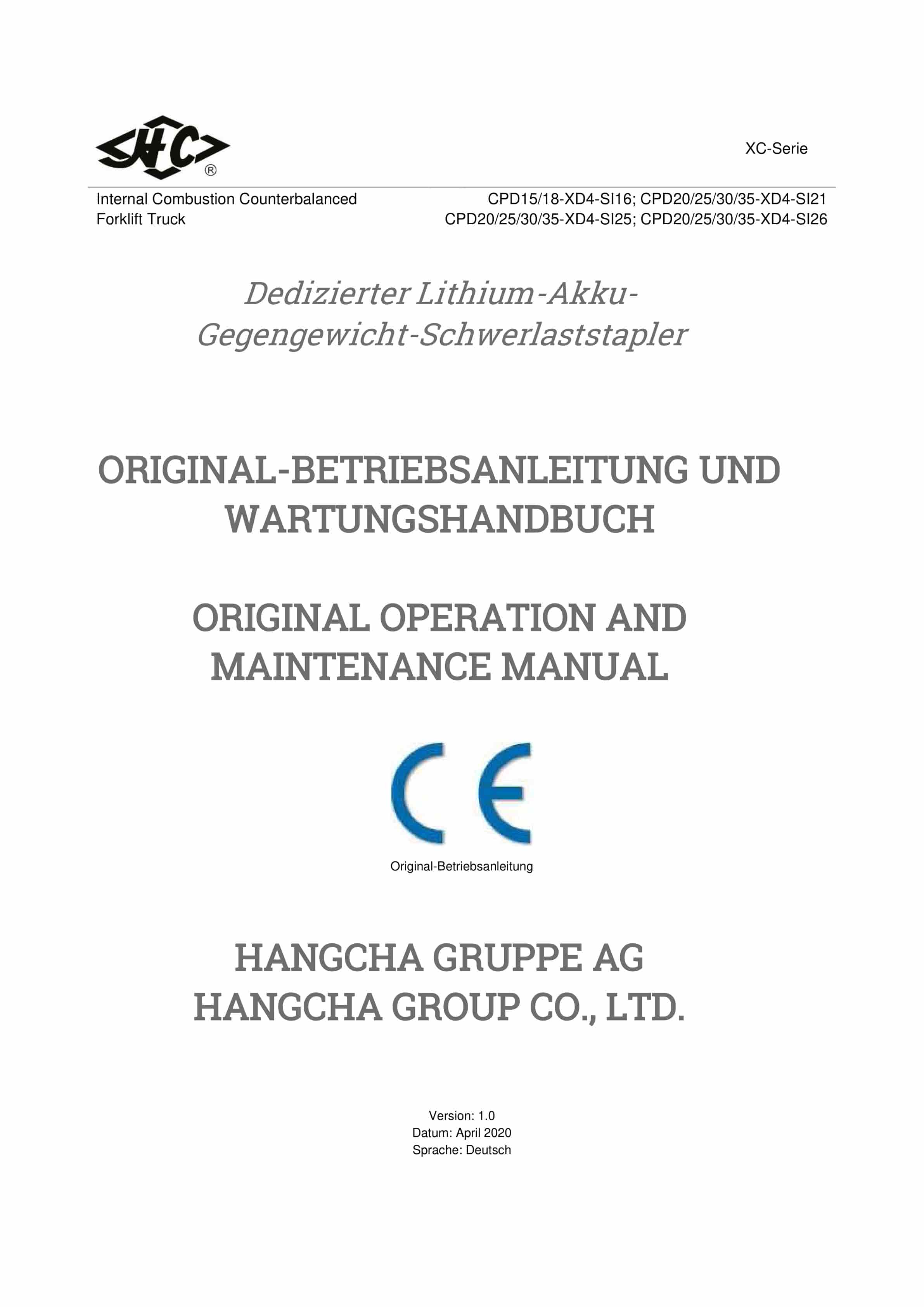 Hangcha CPD15-XD4-SI16 to CPD35-XD4-SI26 Operation and Maintenance Manual DE