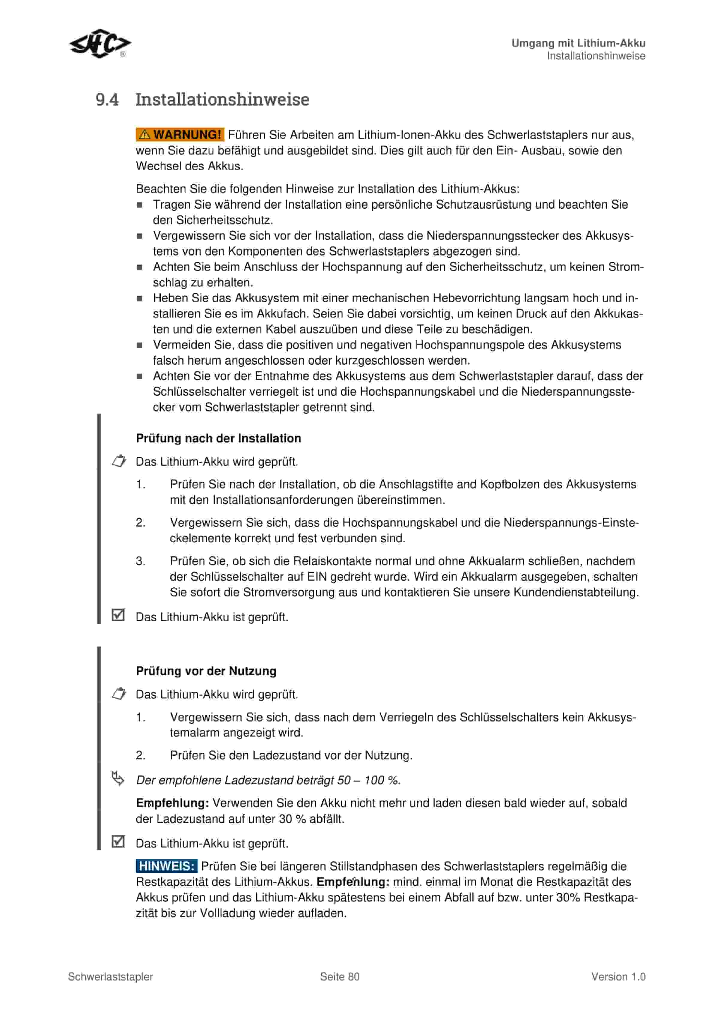 - 9.1. Sicherheitshinweise für den Umgang mit Lithium-Akku