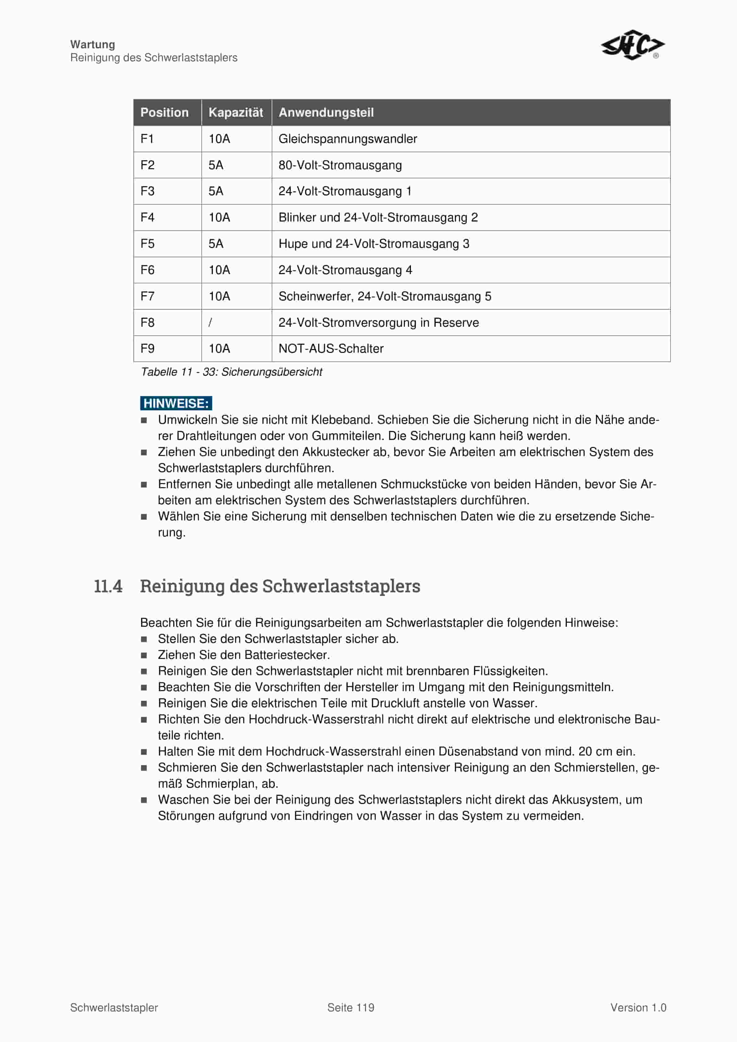 - 12.2. Schwerlaststapler stillsetzen (längerer Zeitraum)