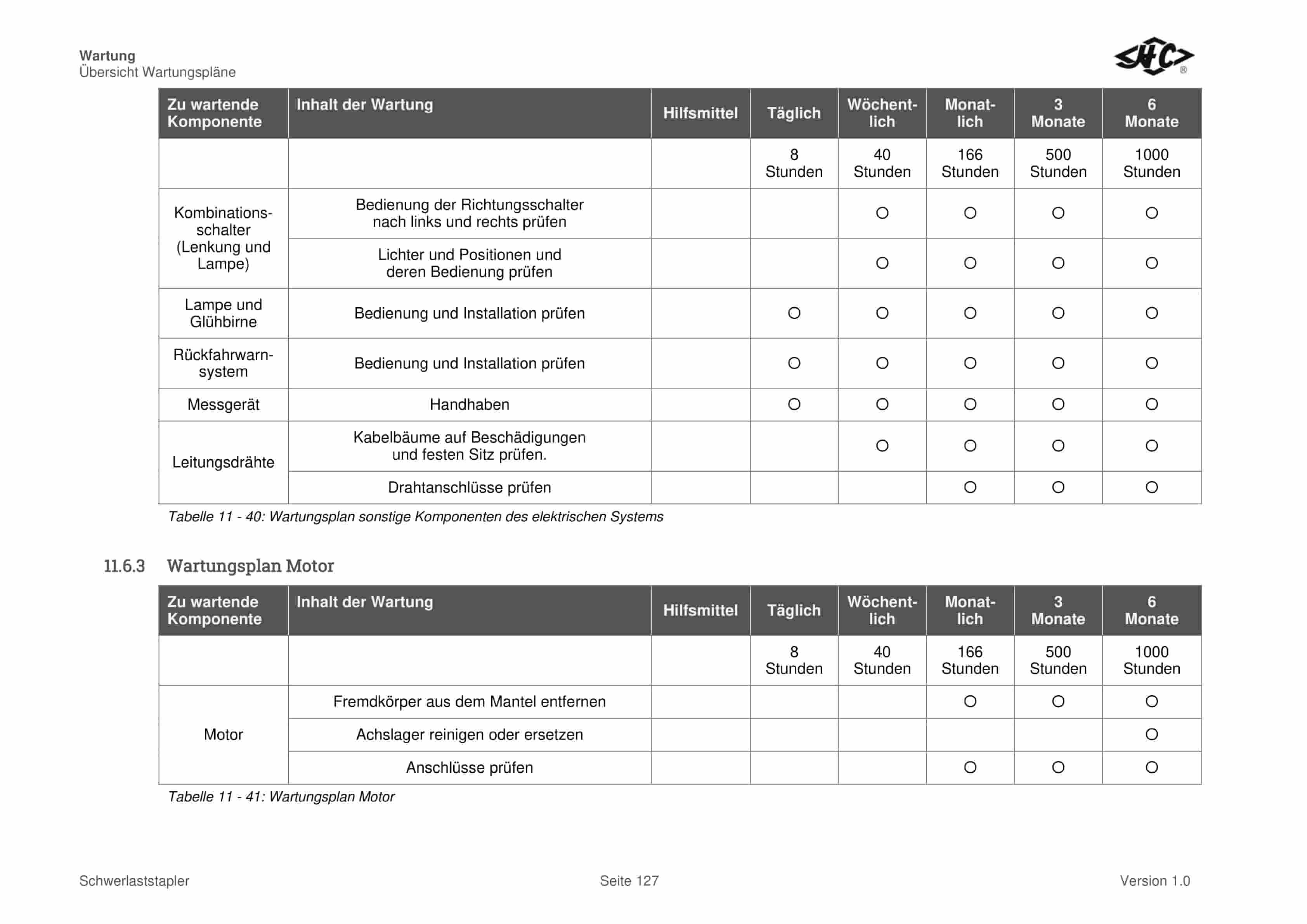 - 11.6.1. Wartungsplan elektrisches System Lithium-Akku und Steuereinheit