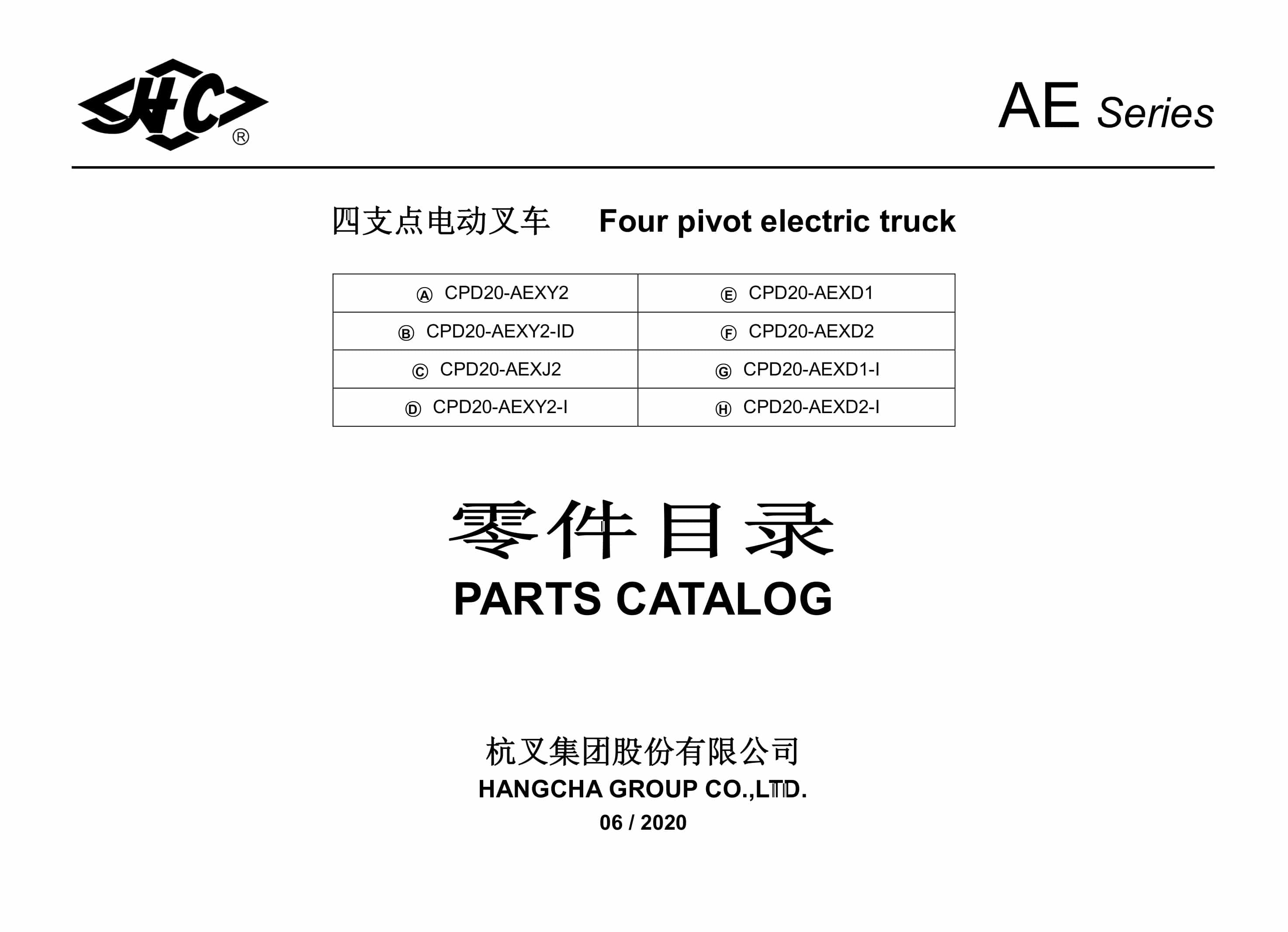 Hangcha CPD20-AEXY2 to CPD20-AEXD2-I Parts Catalog
