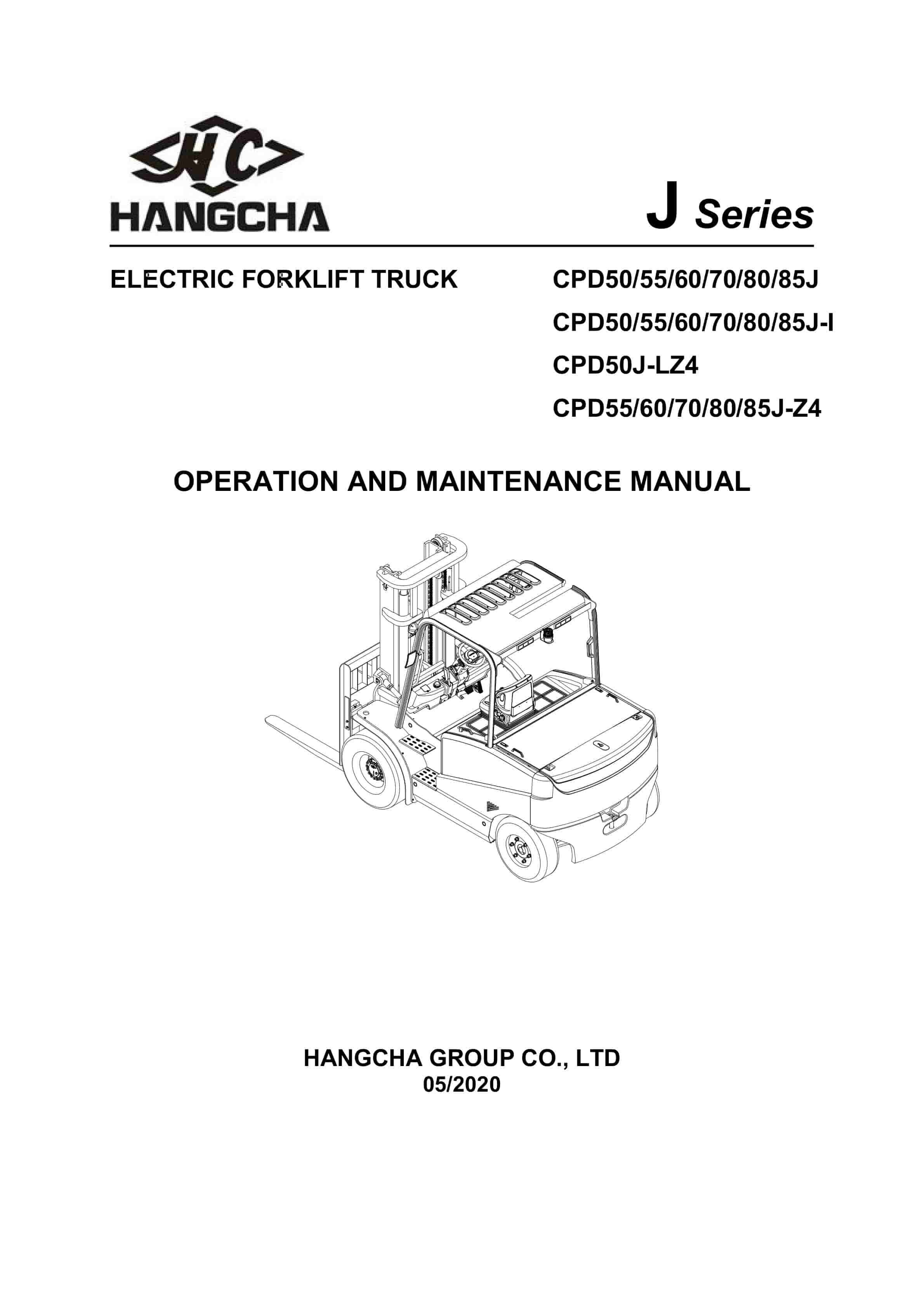 Hangcha CPD50J to CPD85J-Z4 Operation and Maintenance Manual