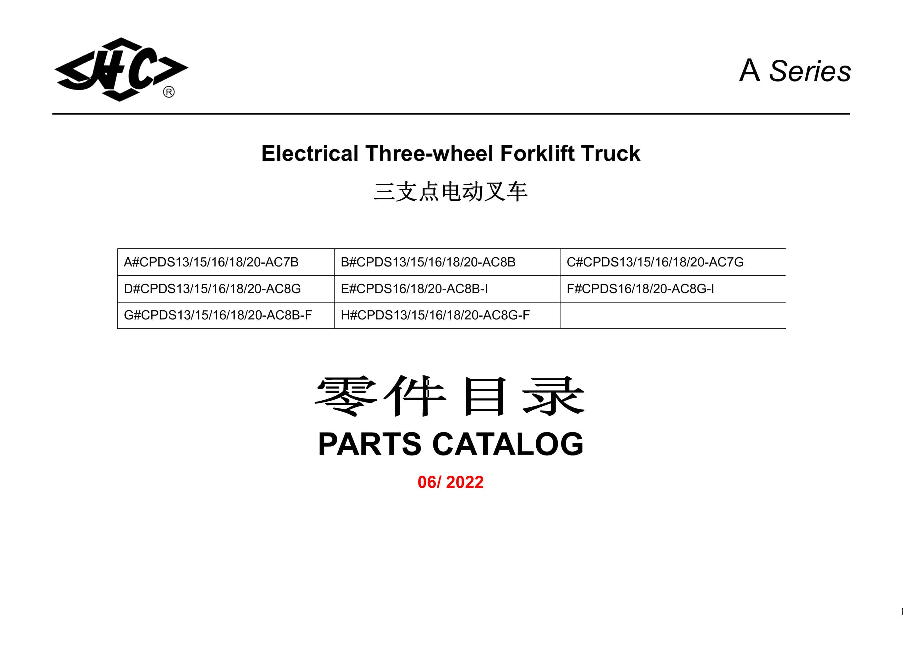 Hangcha CPDS13-AC7B to CPDS20-AC8G-F Parts Catalog
