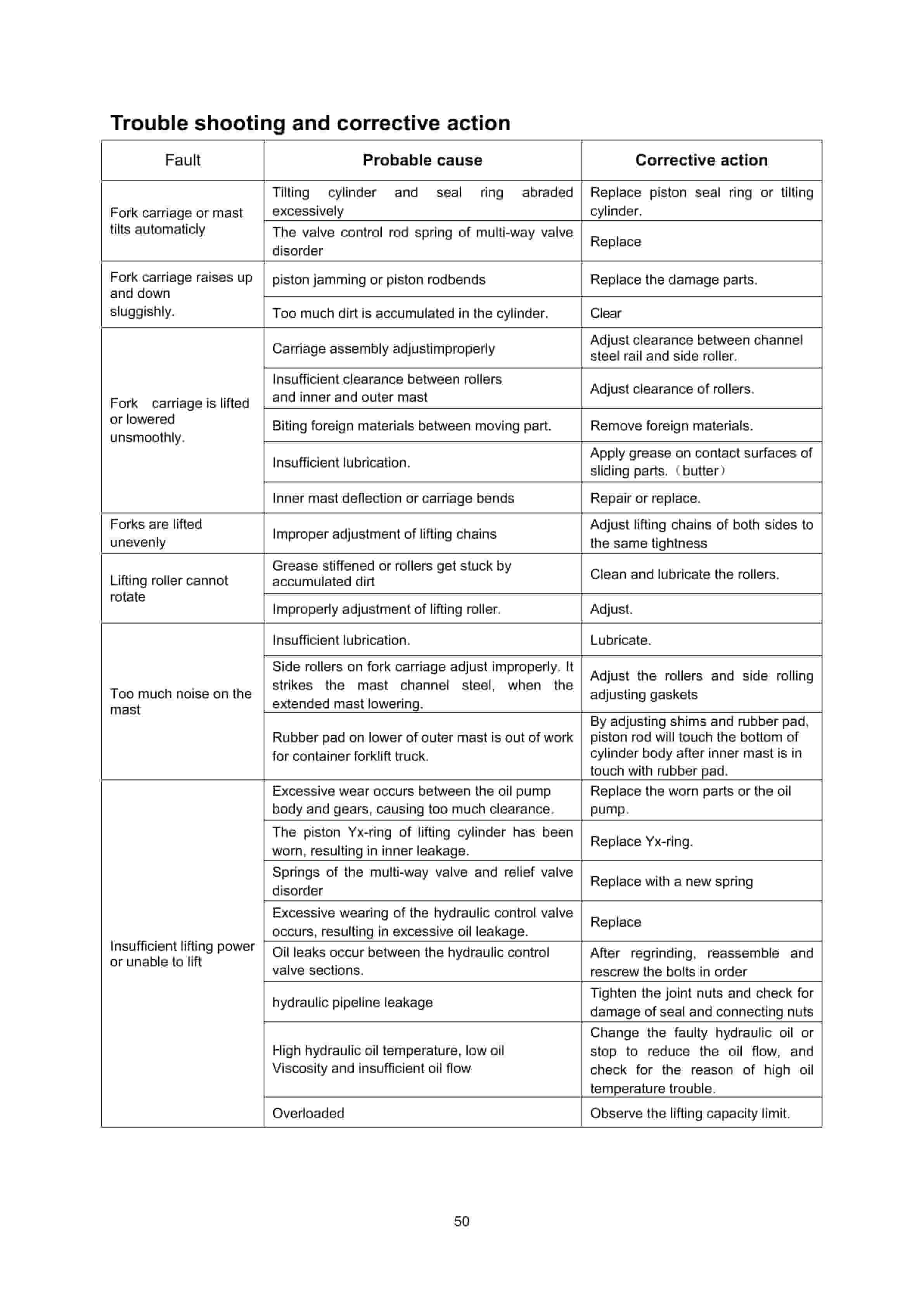 • 5.1. Trouble shooting and corrective action