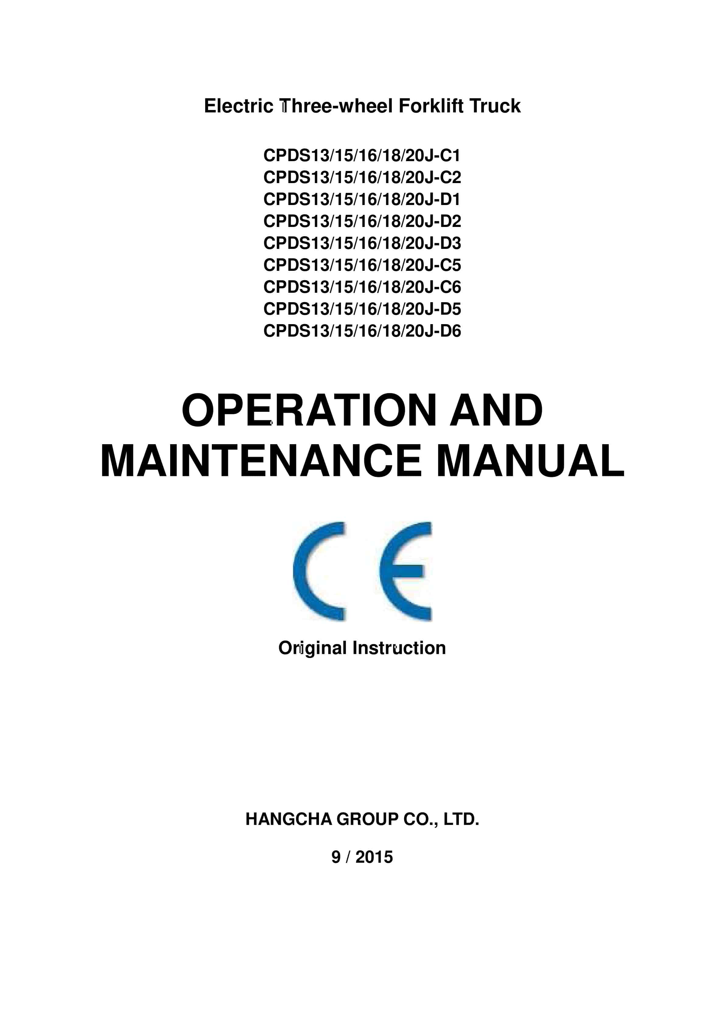 Hangcha CPDS13J-C1 to CPDS20J-D6 Operation and Maintenance Manual