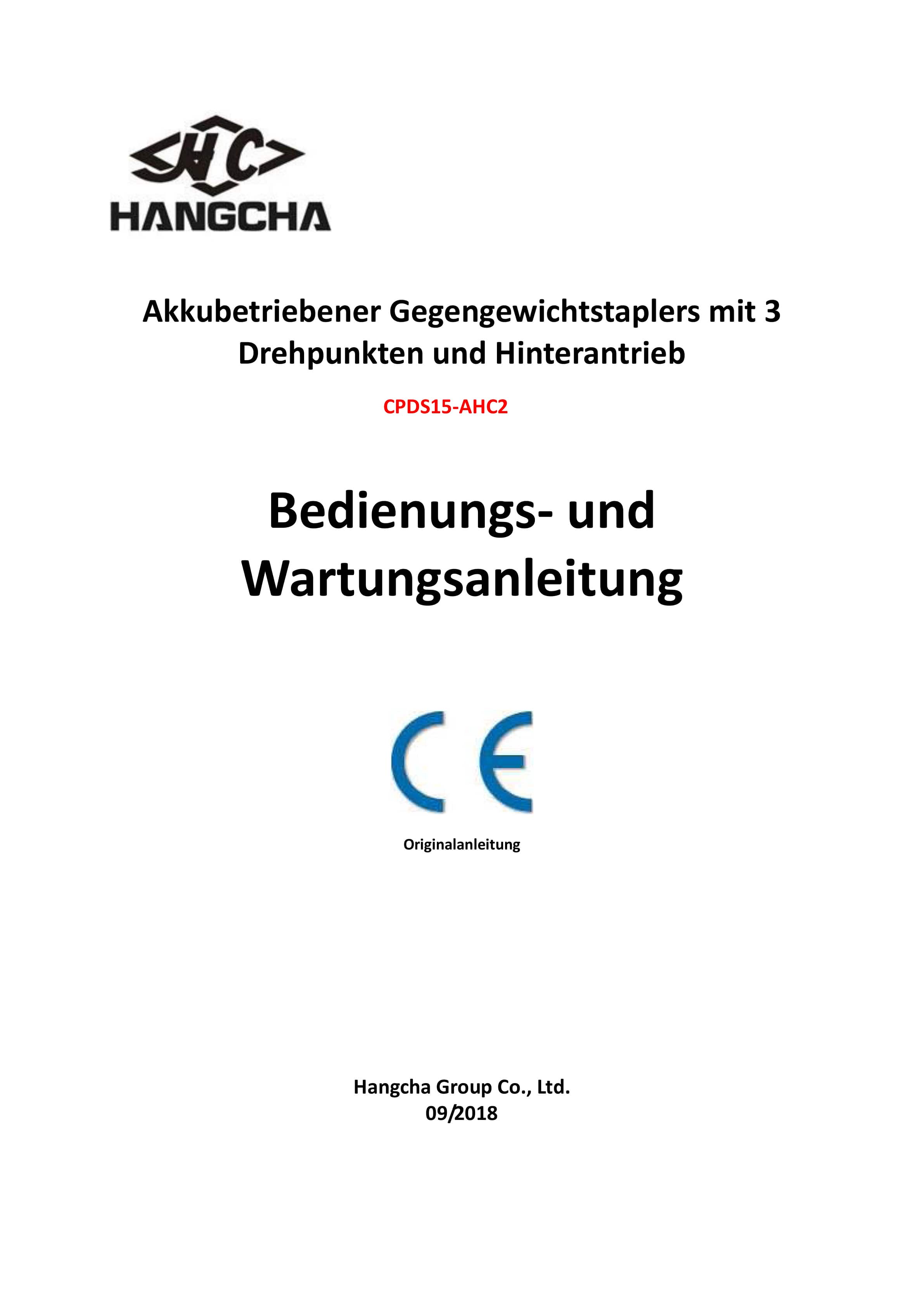 Hangcha CPDS15-AHC2 Operation and Maintenance Manual DE