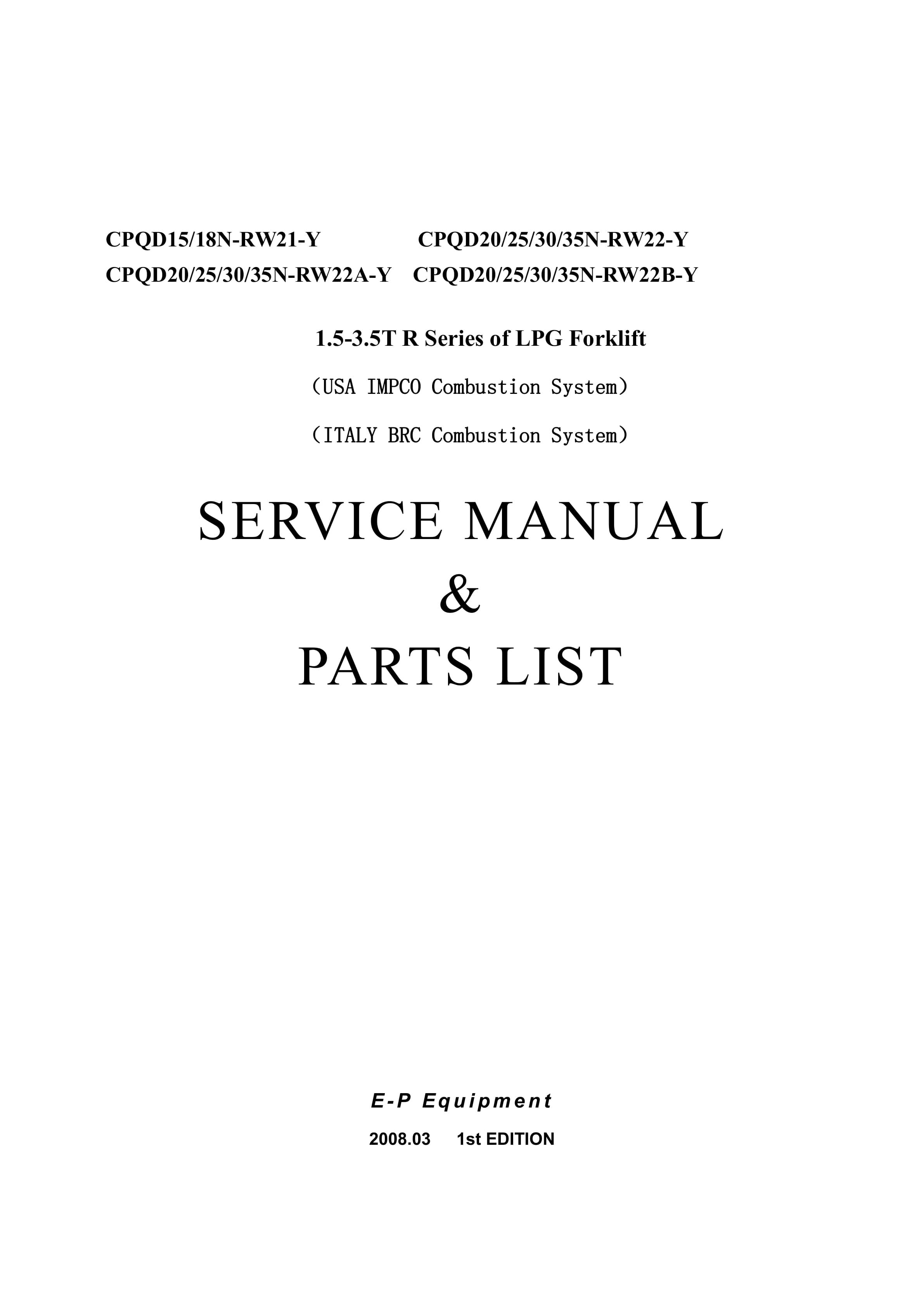 Hangcha CPQD15N-RW21-Y to CPQD35N-RW22B-Y Service Manual