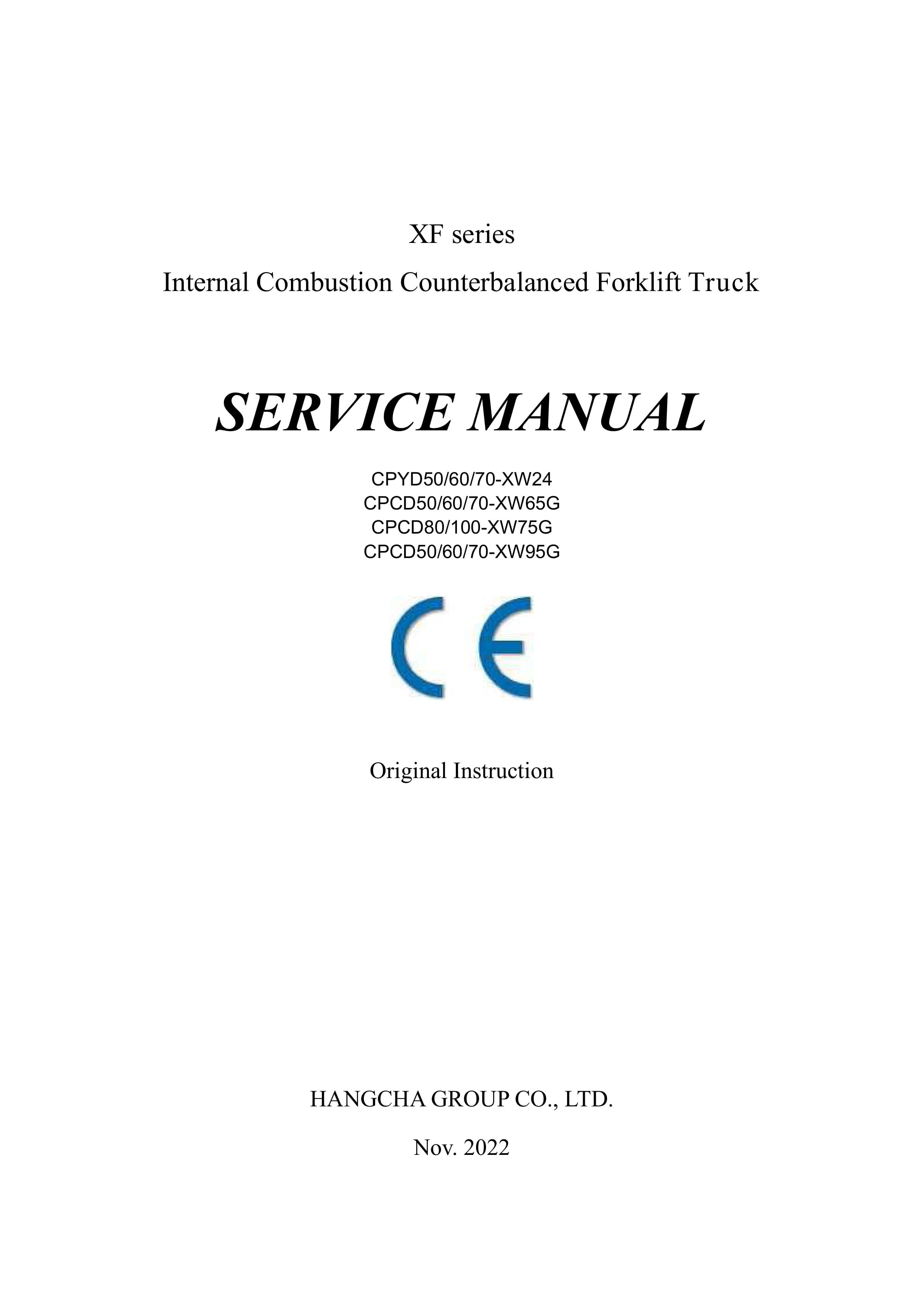 Hangcha CPYD50-XW24 to CPCD70-XW95G Service Manual