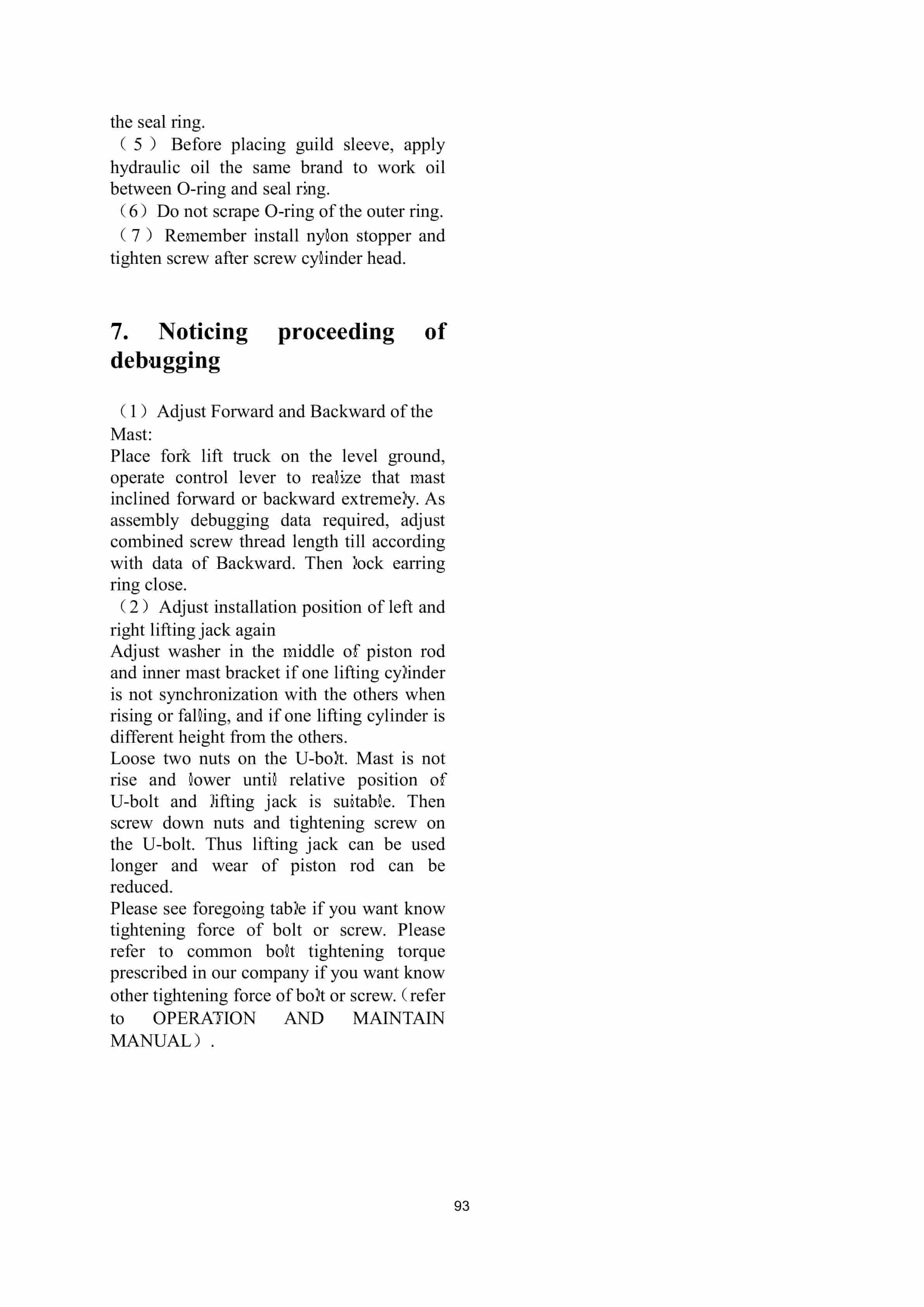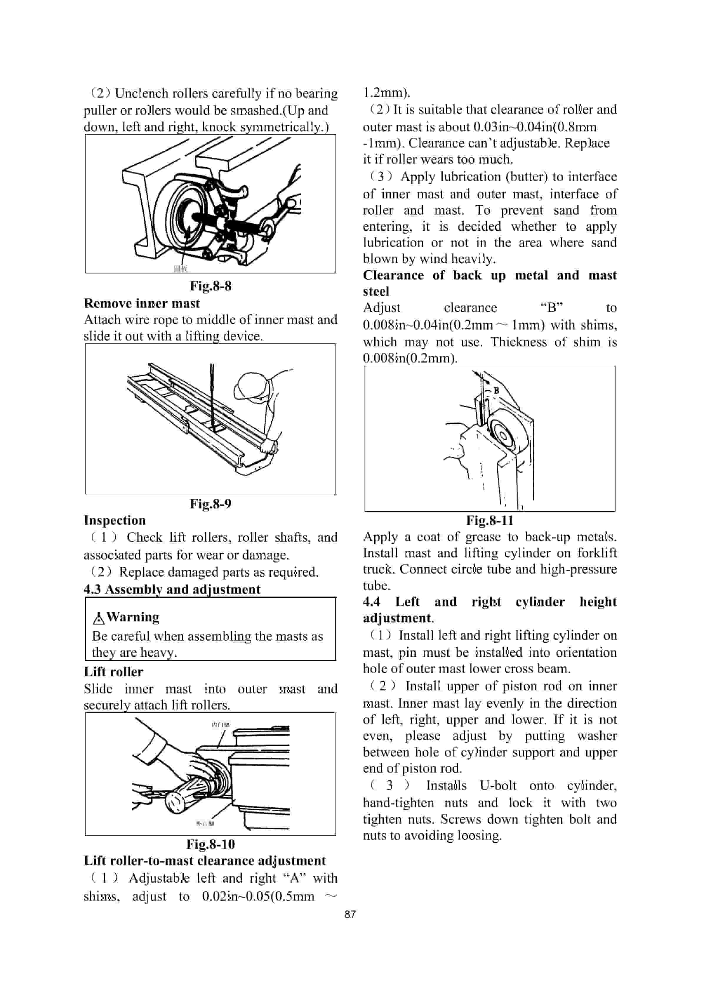 - 48. Mast dismantle and install adjustment