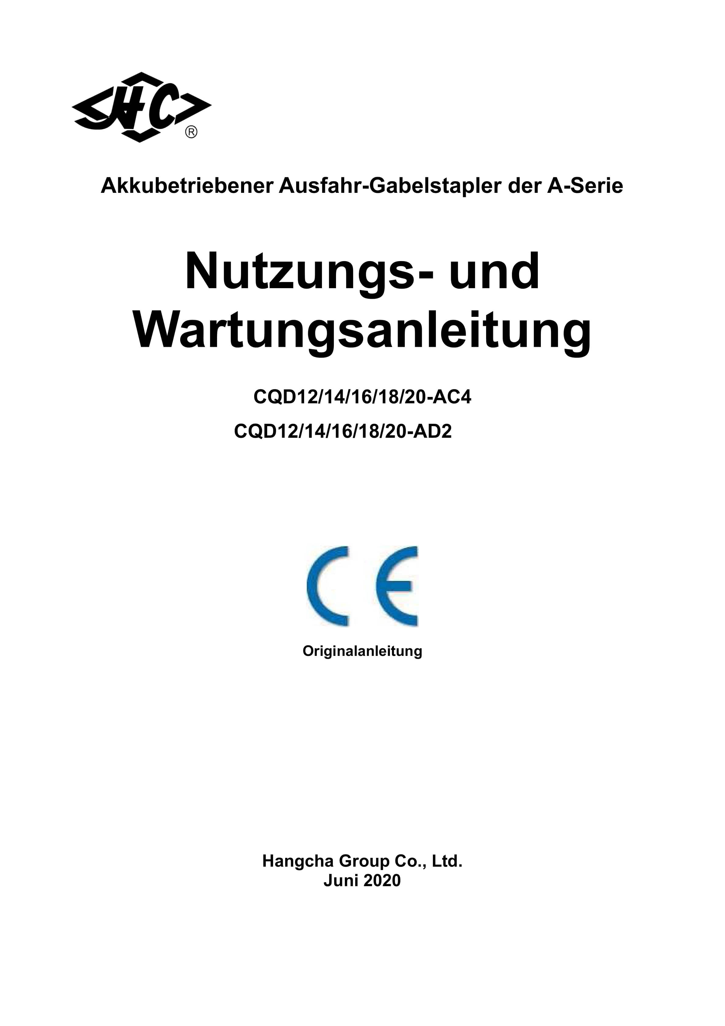 Hangcha CQD12-AC4 to CQD20-AD2 Operation Manual DE-4