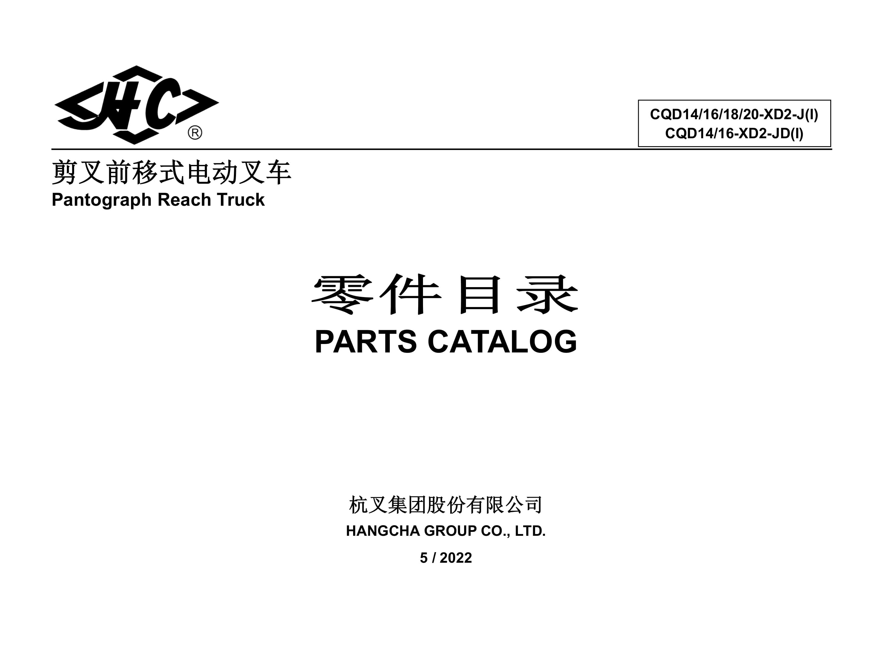 Hangcha CQD14-XD2-J(I) to CQD16-XD2-JD(I) Parts Catalog